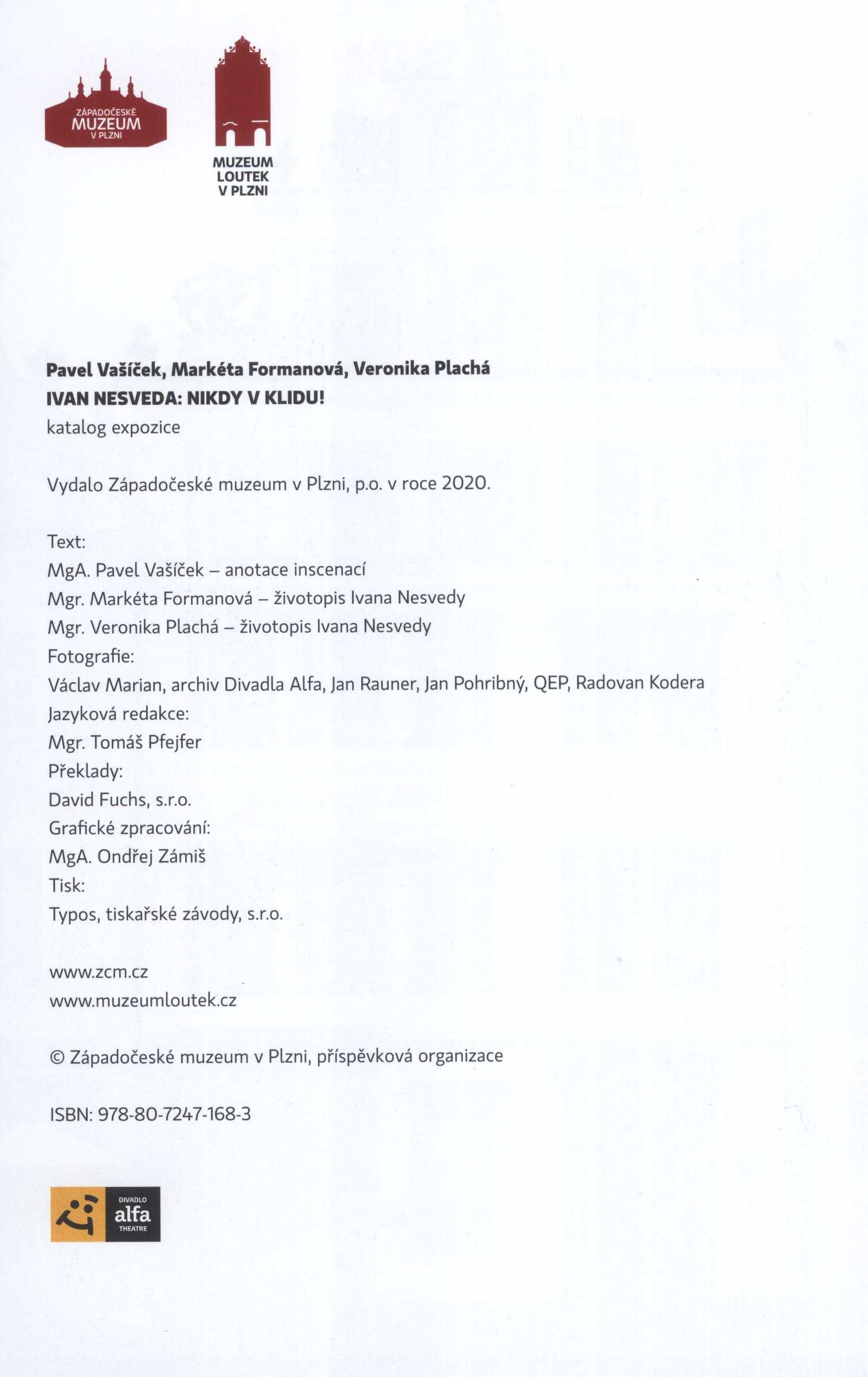 AnotaceKatalog nové expozice Divadla Alfa v Muzeu loutek v Plzni, která se zaměřuje na tvorbu výtvarníka Ivana nesvedy a jeho spolupracovníků.