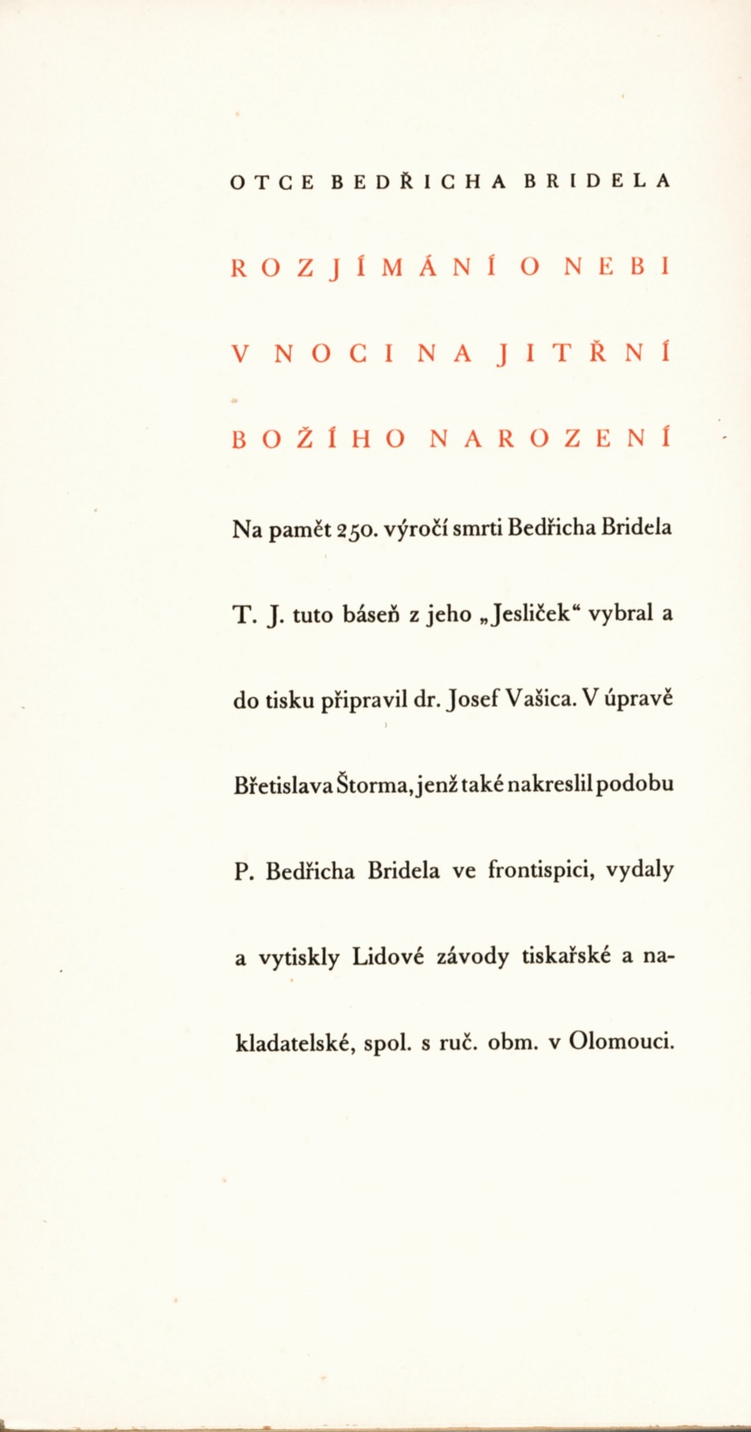 V úpravě Břetislava Štorma, jenž také nakreslil podobu P. Bedřicha Bridela ve frontispici
