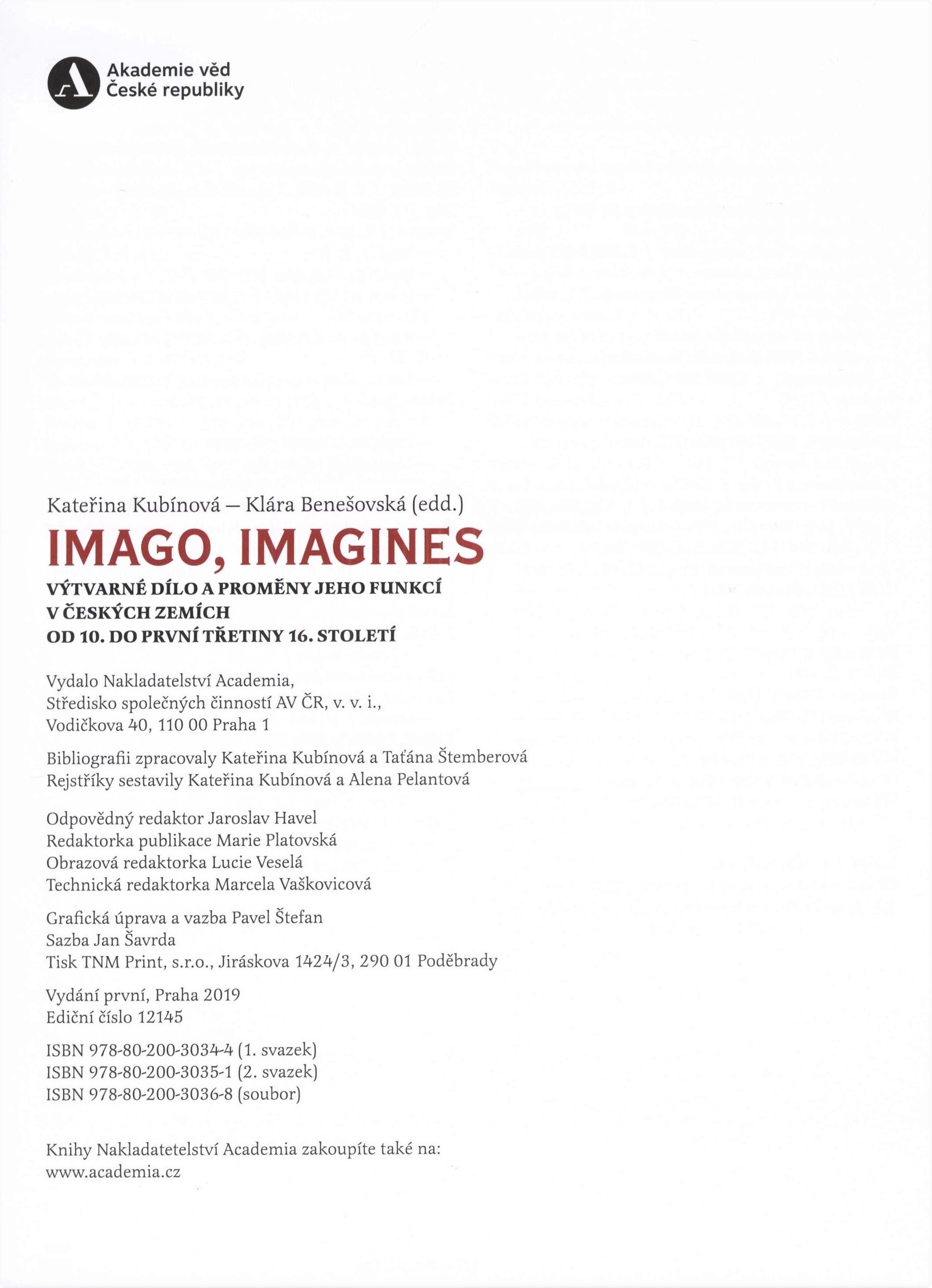 1. Názvové údajeImago, imagines : výtvarné dílo a proměny jeho funkcí v českých zemích od 10. do první třetiny 16. století. II. / Kateřina Kubínová, Klára Benešovská (edd.) ; grafická úprava a vazba Pavel Štefan