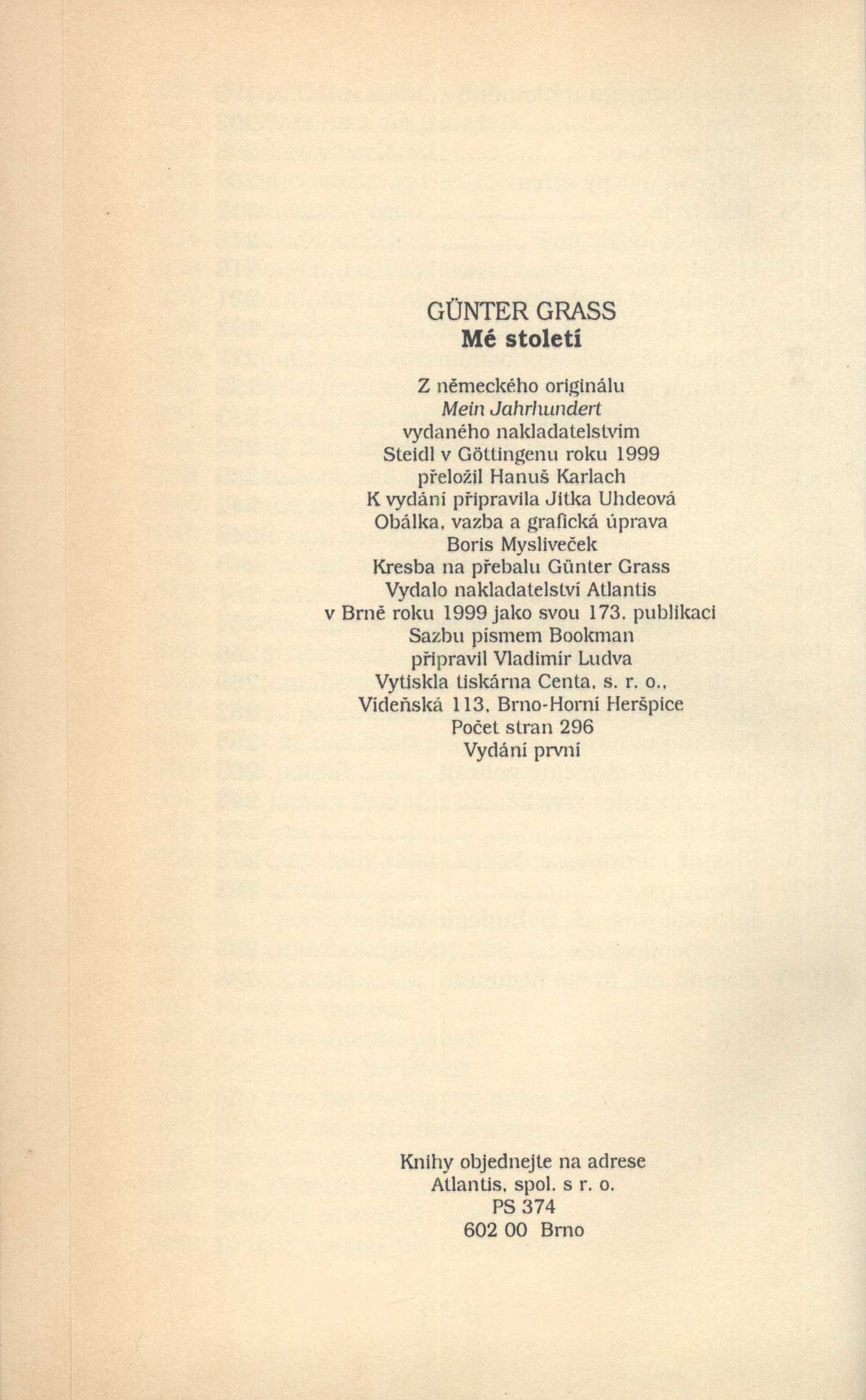 1. Názvové údajeMé století / Günter Grass ; z německého originálu Mein Jahrhundert ... přeložil Hanuš Karlach