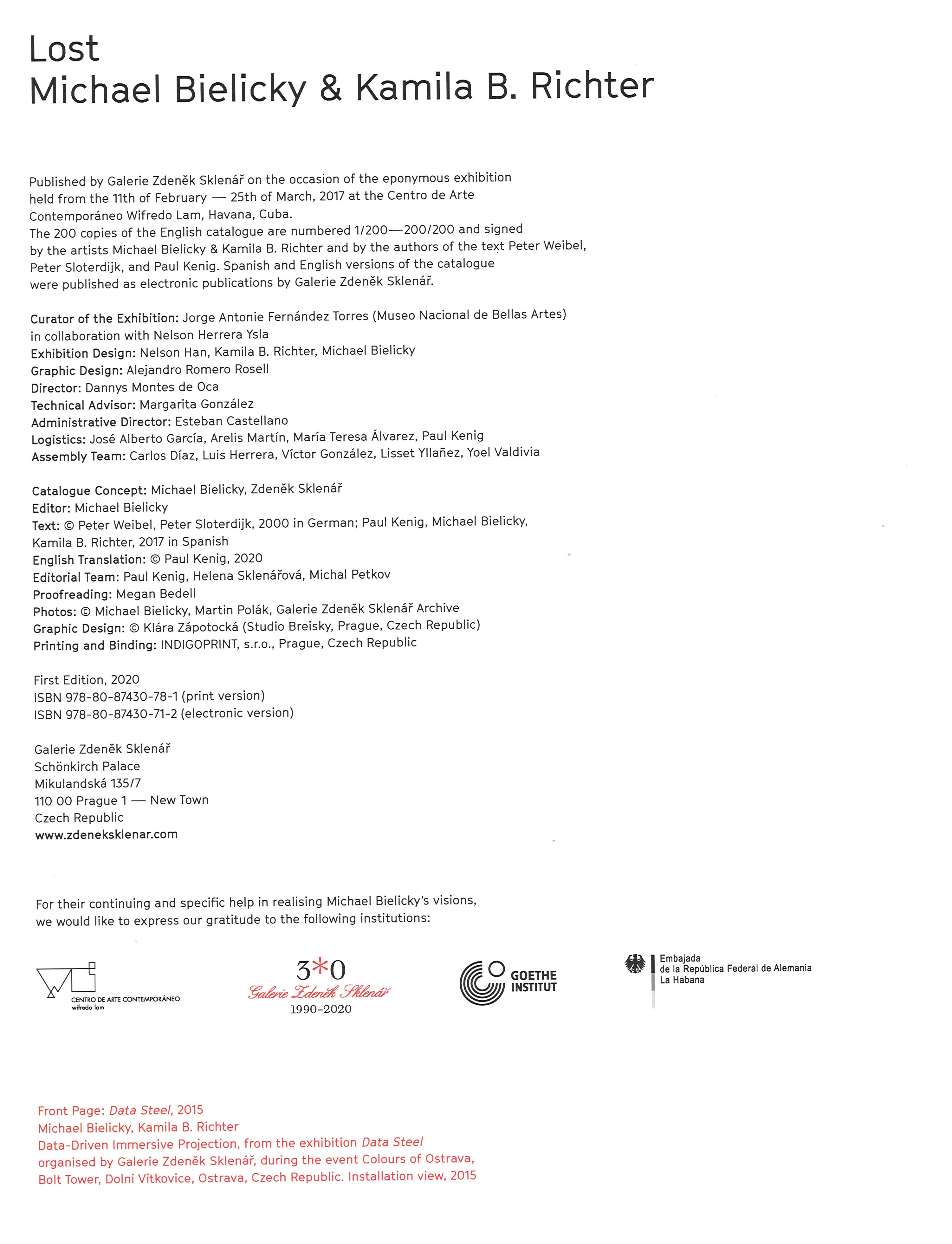 Katalog vychází u příležitosti stejnojmenné výstavy konané v Centro de Arte Contemporáneo Wifredo Lam, Havana, Cuba, 11.2.-25.3.2017.