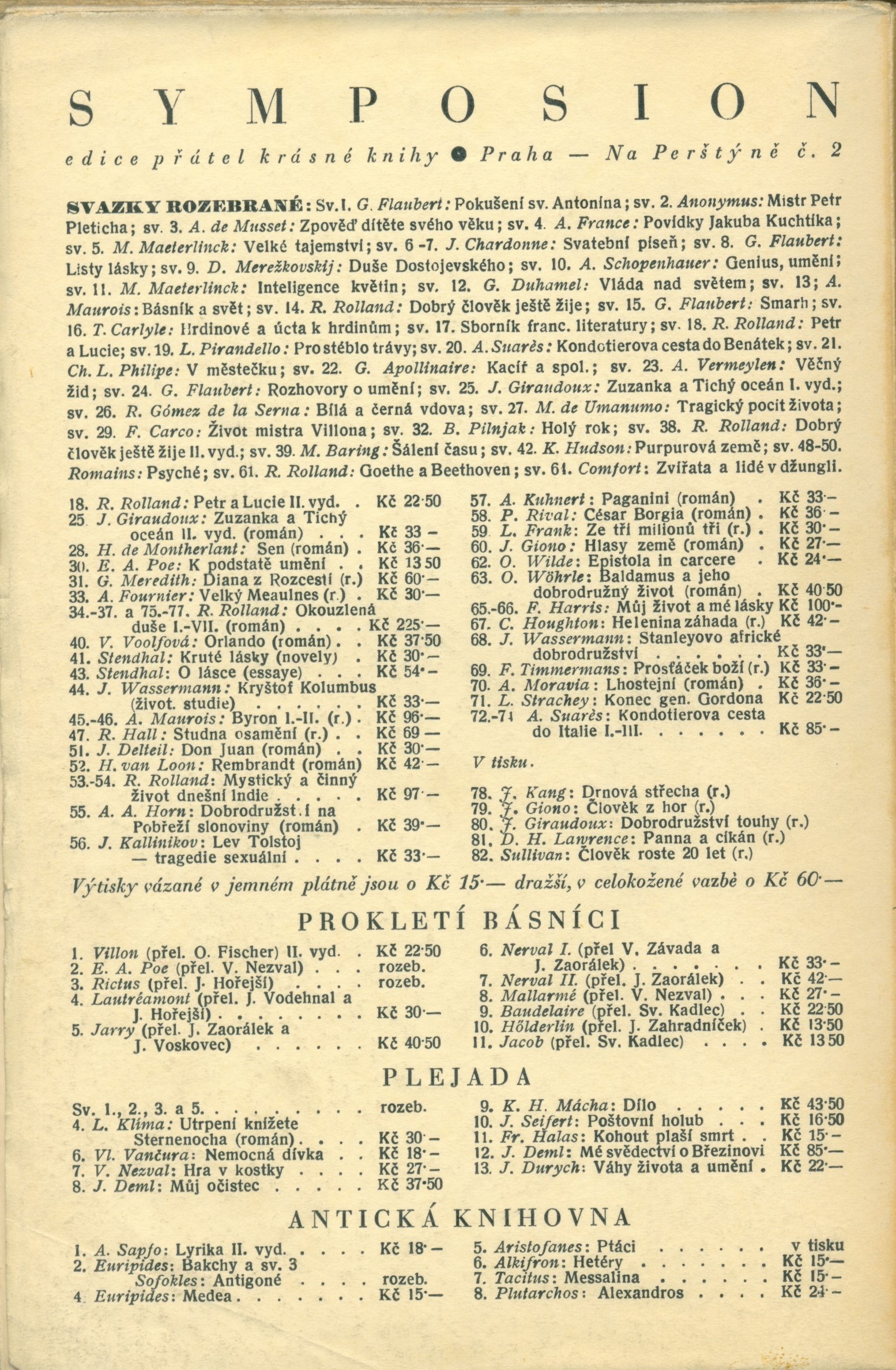 Symposion, (Rudolf Škeřík)Země vyd. Česko Jazyk dok. čeština Jazyk orig. francouzština Poznámky Vazbu navrhla M. Králová