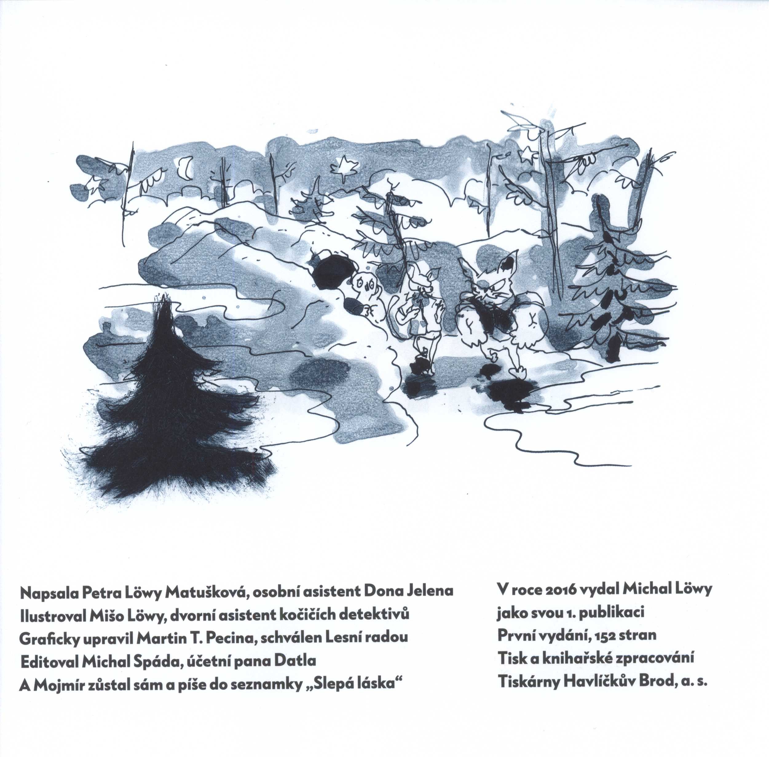 Názvové údaje Kočičí detektivové / Petra Löwy Matušková ; ilustrace Mišo Löwy ; graficky upravil martin T. Pecina ; editoval Michal Spáda Osobní jméno Löwy Matušková, Petra, 1985- (Autor) Další autoři Löwy, Mišo, 1984- (Ilustrátor) Pecina, Martin T., 1982- (Knižní grafik) Spáda, Michal, 1980- (Editor) Korp. Tiskárny Havlíčkův Brod (firma) (Tiskař) Údaje o vydání První vydání Nakladatel Ostrava : Michal Löwy, 2016 Výrobce Havlíčkův Brod : Tiskárny Havlíčkův Brod, a.s. Rozsah 145 stran : ilustrace ; 22 x 24 cm ISBN 978-80-906663-0-6 (brožováno) Země vyd. Česko Jazyk dok. čeština Poznámky Bílá obálka s černobílou ilustrací, barevný text (i na hřbetu). - Patitul, černobílá ilustrace. - Rozložený ilustrovaný titulní list. - Černé listy s bílým textem na úvod kapitol. - Modře tónované černobílé ilustrace. - Ilustrace v tiráži. - Anotace knihy, barevný text a ilustrace na zadní straně obálky.