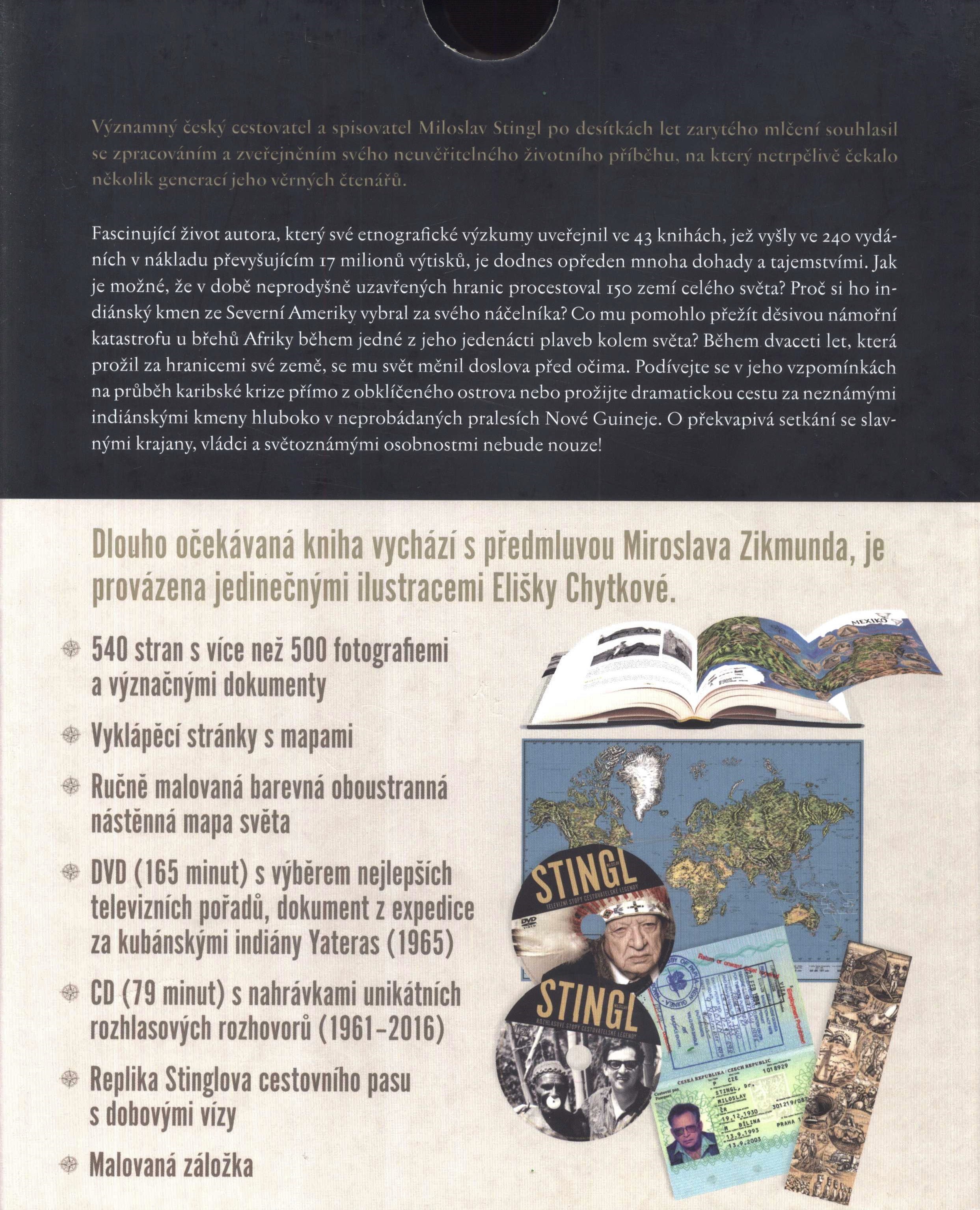 Anotace První autorizovaná biografie cestovatelské legendy Miloslava Stingla. Druh dok. monografie Poznámky o skryté bibliografii a rejstřících Obsahuje bibliografie a jmenný rejstřík Osobní hesla Stingl, Miloslav, 1930-2020 - spisovatel, cestovatel, etnograf a vysokoškolský pedagog Předmětová hesla travellers - Czechia - 20th-21st centuries * ethnographers - Czechia - 20th-21st centuries * travels and stays - countries of the world Geografické heslo countries of the world - description and travel * countries of the world - ethnography Klíčová slova česká literatura * biografie * geografie * etnografie * země světa * cesty * pobyt * cestovatelé * etnografové * Stingl M. * Česko * r. 1930-2016 * stol. 20.-21. * Nejkrásnější české knihy * r. 2016 MDT 39 * 913 * 821.162.3 Uživatelské pole PNP Kniha, DVD+CD, mapa a pas uloženy v kartonovém pouzdru. - V kartonovém obalu zasunuto DVD a CD. - Faksimile pasu M. Stingla. - Oboustranná složená mapa světa s vyznačenými cestami M. Stingla (90 x 126 cm složeno na 23 x 19 cm). - barevná záložka. - NK 16/0038 silně potrhaný obal knihy. Nejkrásnější české knihy 2016 - 2. místo Cena Svazu polygrafických podnikatelů. Signatura Přír.číslo Lokace Info NK/16 038 0057/2022 Sbírka