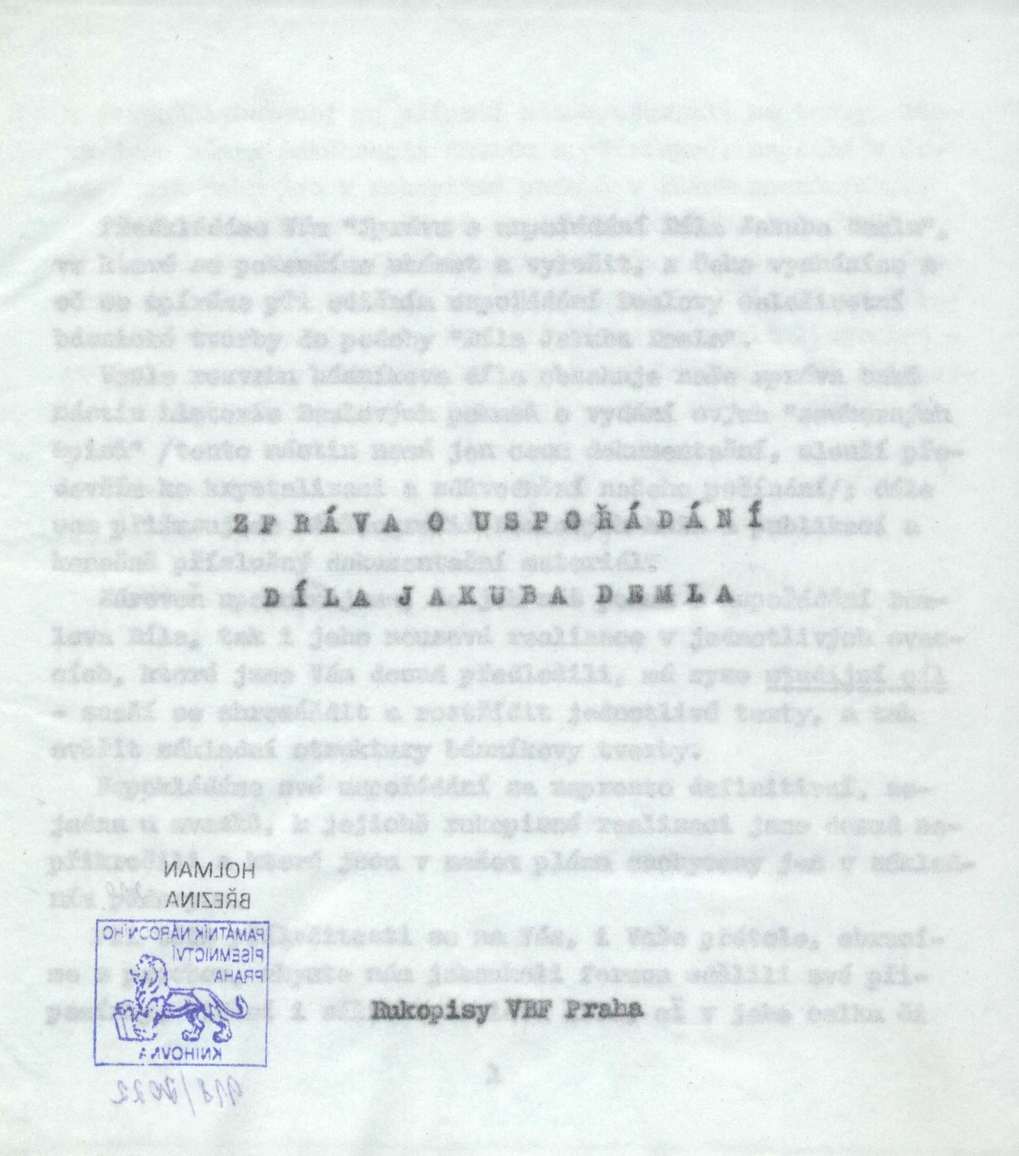 Zpráva o uspořádání Díla Jakuba Demla