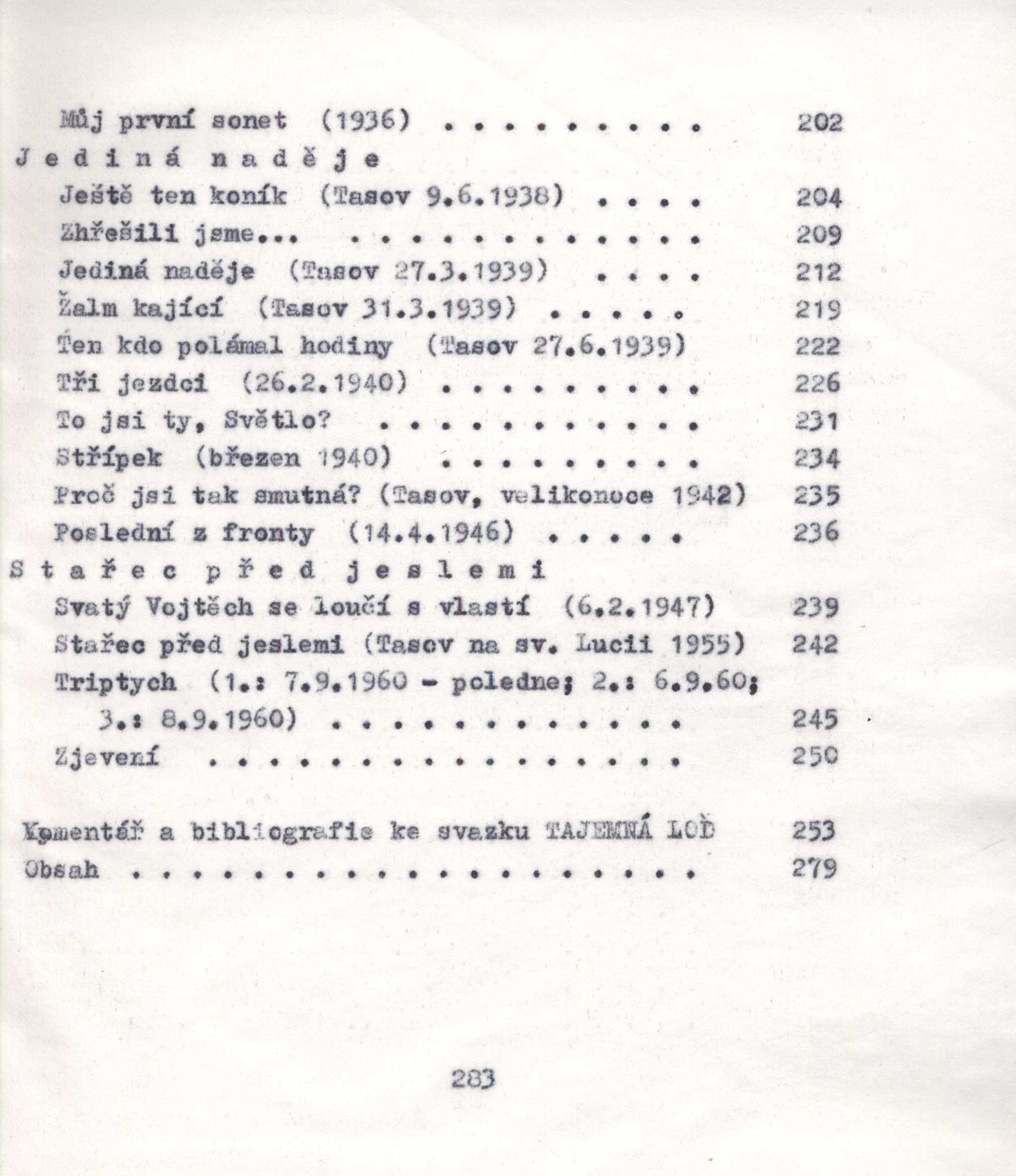 Poznámky Polokožená vazba s raženým zlaceným textem, ražený text na hřbetě. - Hnědá horní ořízka. - Komentář. - Obsahuje bibliografii. - Samizdat. - Strojopis na průklepovém papíře.