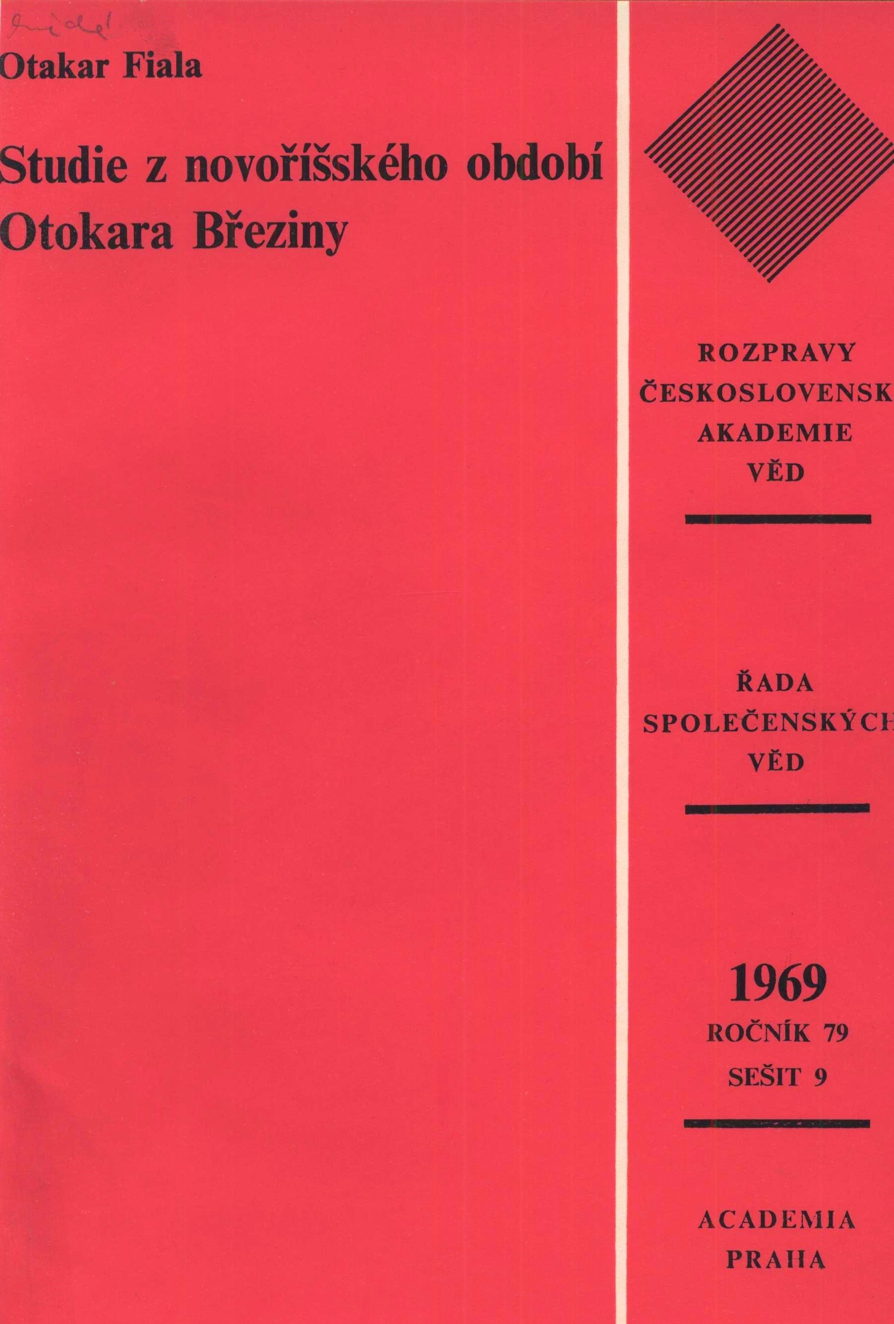 Edice Rozpravy Československé akademie věd. Řada společenských věd ; ročník 79, sešit 9