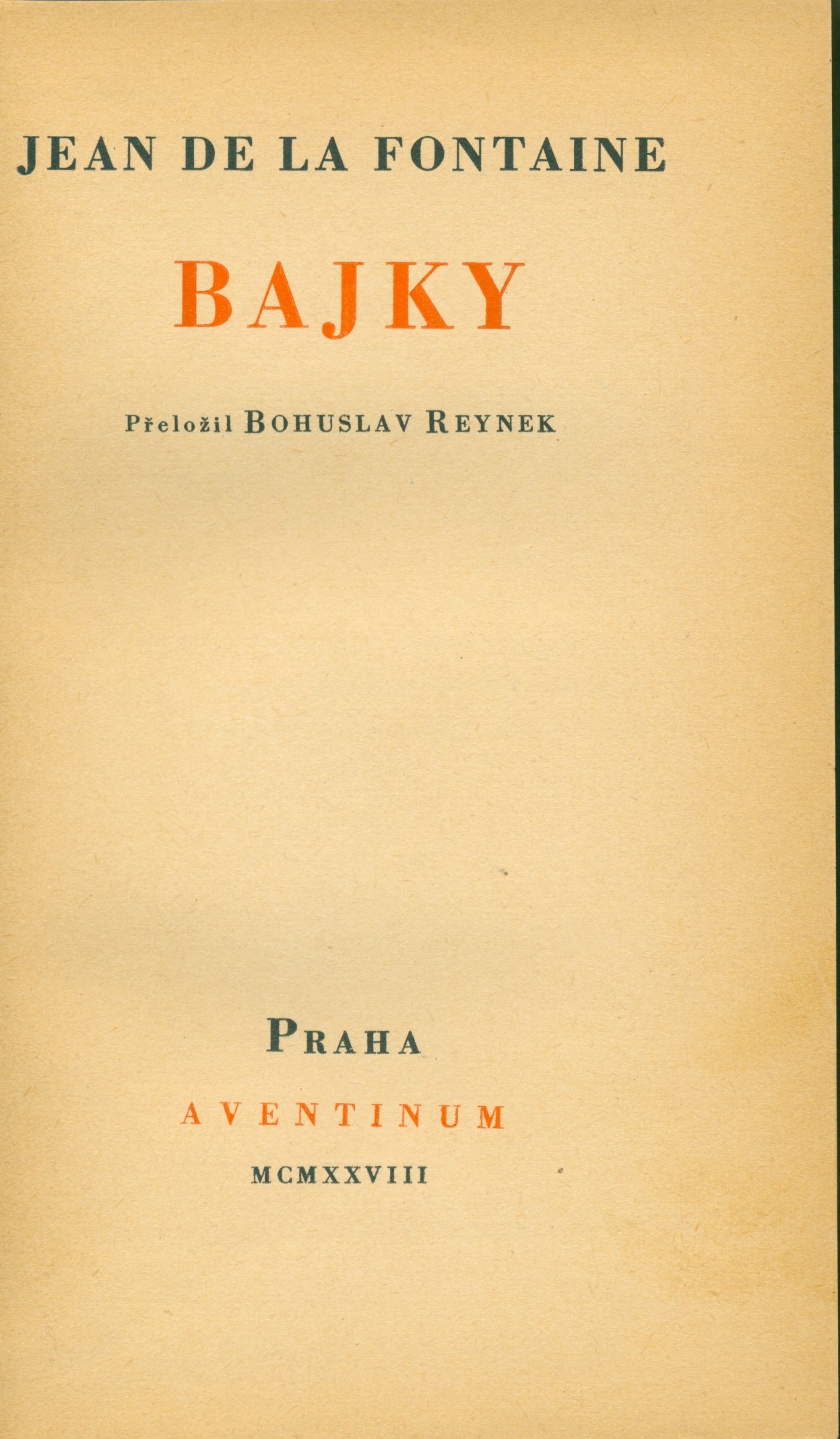 Názvové údaje Bajky / Jean de La Fontaine ; přeložil Bohuslav Reynek Osobní jméno La Fontaine, Jean de, 1621-1695 (Autor) Další autoři Reynek, Bohuslav, 1892-1971 (Překladatel) (Autor úvodu atd.) Muzika, František, 1900-1974 (Knižní grafik) Hořejší, Jindřich, 1886-1941 (Dedikátor) Šimsová, Růžena, 1899- (Dedikant) Korp. Dr. Ot. Štorch-Marien (nakladatelství) (Nakladatel, vydavatel) Vokolek, Václav (tiskárna : Pardubice) (Tiskař) Nakladatel Praha : Aventinum, Dr. Ot. Štorch-Marien, 1928 Výrobce Pardubice : V. Vokolek Rozsah 513 stran ; 19 cm ISBN (Vázáno) Edice 207. svazek ... edice Aventinum