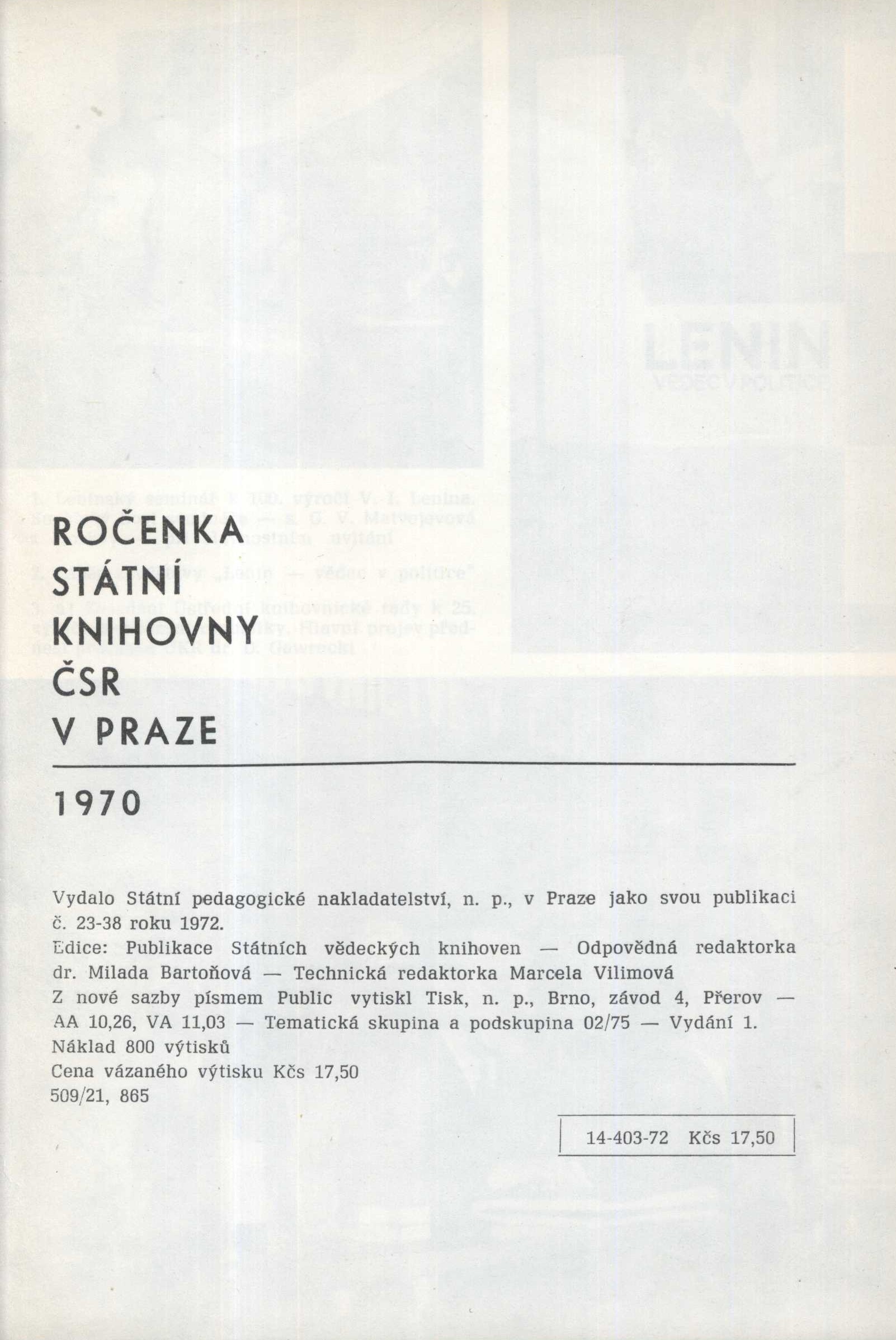 Ročenka Státní knihovny ČSR v Praze 1970