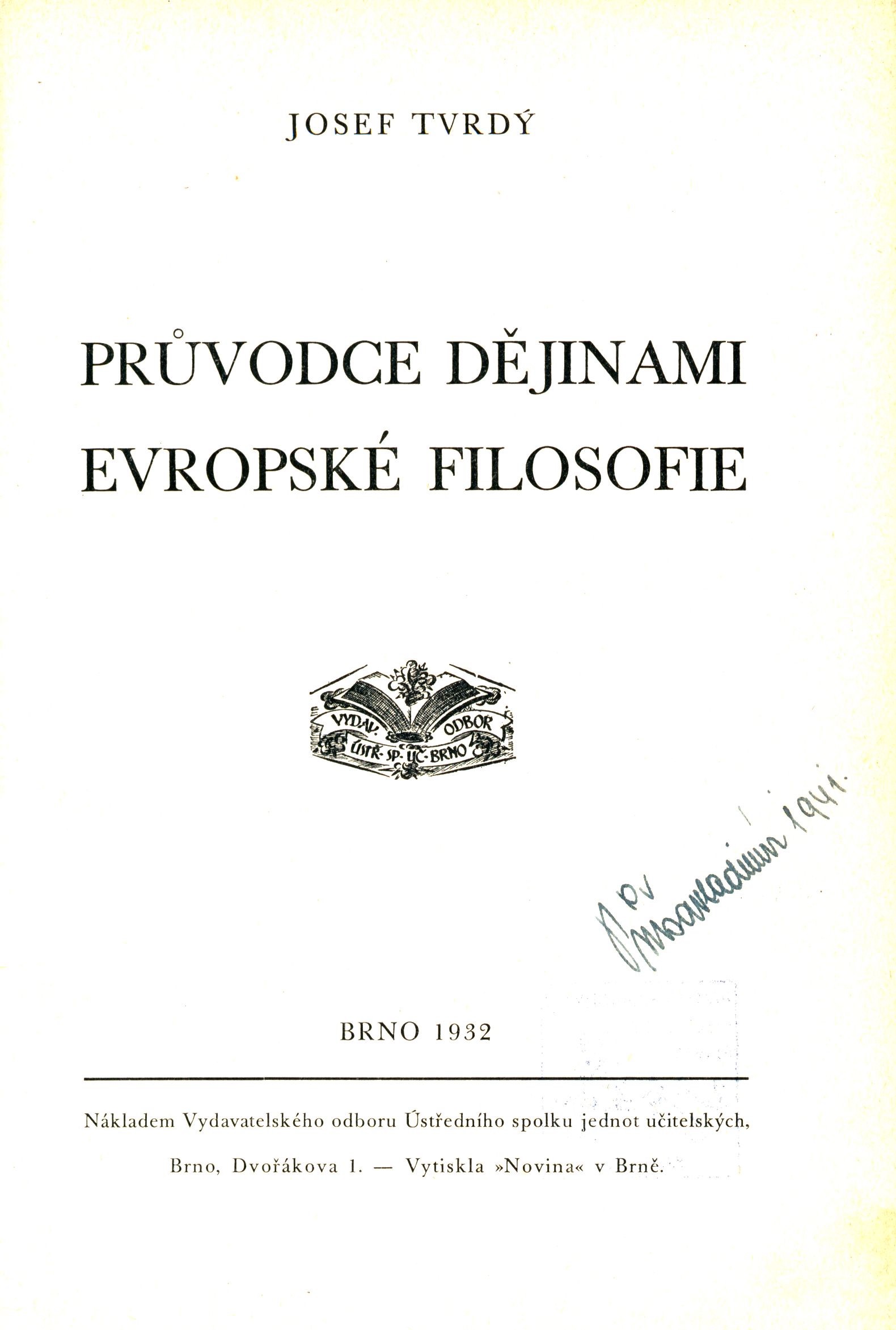 Názvové údaje Průvodce dějinami evropské filosofie / Josef Tvrdý Osobní jméno Tvrdý, Josef, 1877-1942 (Autor) Další autoři Vydavatelský odbor Ústředního spolku jednot učitelských (Brno) (Nakladatel, vydavatel) Tiskárna Novina (Brno) (Tiskař) Nakladatel Brno : Nákladem Vydavatelského odboru Ústředního spolku jednot učitelských, 1932 Výrobce Novina Rozsah 495 stran ; 22 cm ISBN (vázáno) Země vyd. Česko Jazyk dok. čeština Poznámky Titulní list s nakladatelskou značkou. - Předmluva. - Rejstřík věcný. - Rejstřík jmenný. - Obsah.