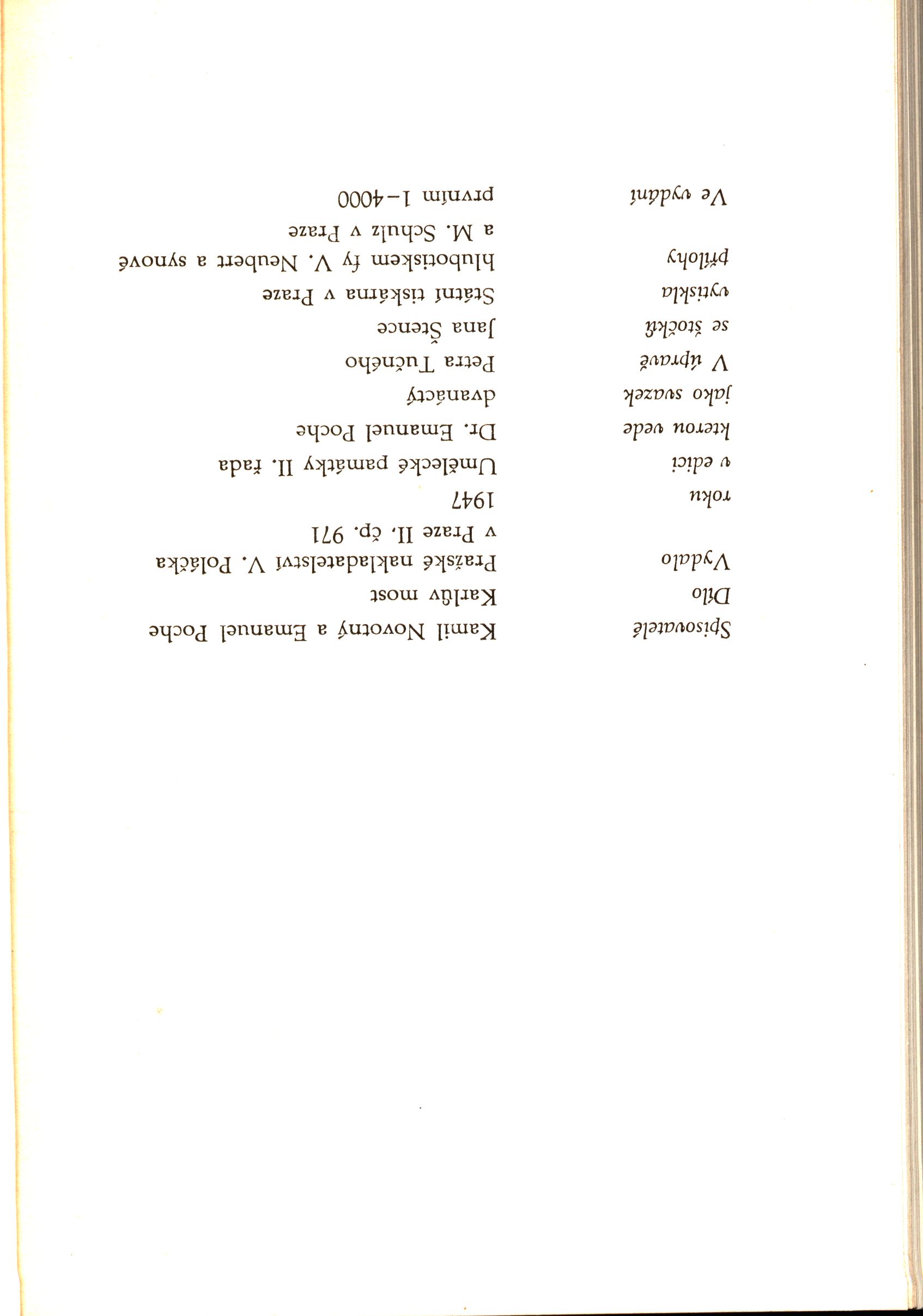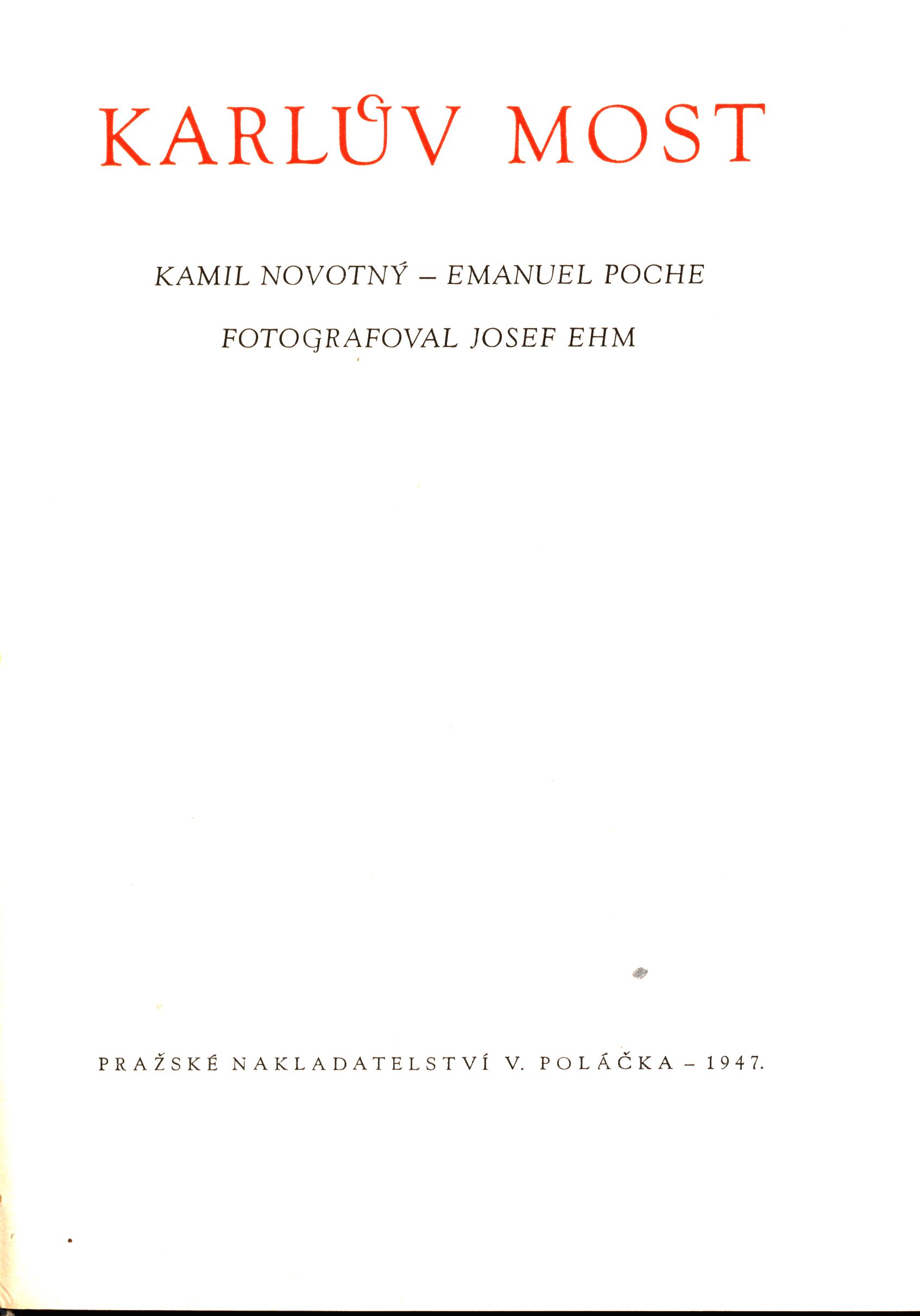 Názvové údaje Karlův most / Kamil Novotný, Emanuel Poche ; fotografoval Josef Ehm ; v úpravě Petra Tučného Osobní jméno Novotný, Kamil, 1892-1959 (Autor) Další autoři Poche, Emanuel, 1903-1987 (Autor) Ehm, Josef, 1909-1989 (Fotograf) Tučný, Petr, 1920-2012 (Knižní grafik) Korp. Václav Poláček (nakladatelství) (Nakladatel, vydavatel) Státní tiskárna v Praze (Tiskař) Údaje o vydání Ve vydání prvním Nakladatel V Praze : Pražské nakladatelství V. Poláčka, 1947 Výrobce Státní tiskárna Rozsah 147 stran, 5 složených listů obrazových příloh : ilustrace, faksimile, fotografie ; 21 cm ISBN (brožováno) Edice Umělecké památky. Řada II ; svazek 12