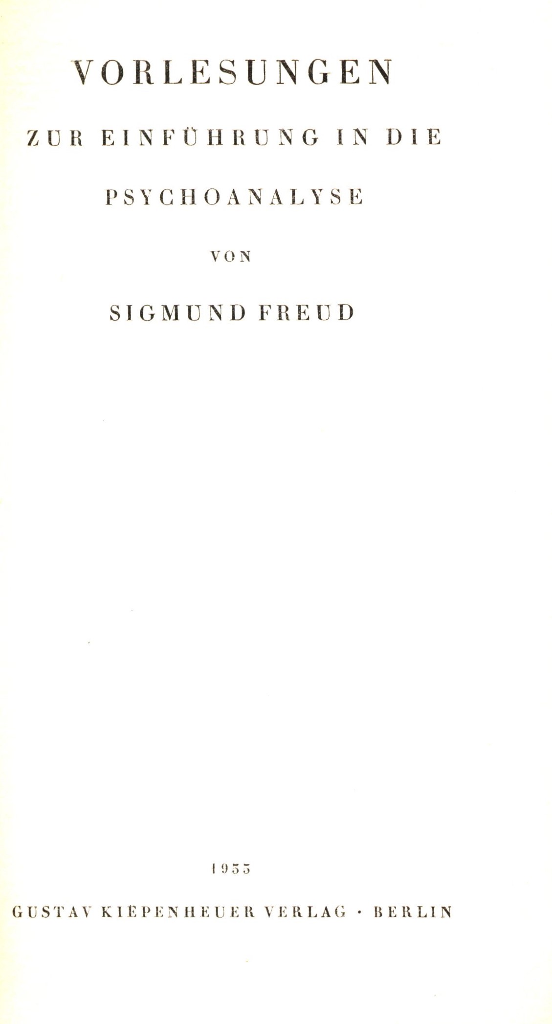 Názvové údaje Vorlesungen zur Einführung in die Psychoanalyse / Sigmund Freud Osobní jméno Freud, Sigmund, 1856-1939 (Autor) Další autoři Gustav Kiepenheuer Verlag (nakladatelství) (Nakladatel, vydavatel) Oscar Brandstetter (firma) (Tiskař) Údaje o vydání 1.-40. Tausend Nakladatel Berlin : Gustav Kiepenheuer Verlag, 1935 Výrobce In Leipzig : Oscar Brandstetter Rozsah 523 stran ; 19 cm ISBN (vázáno) Země vyd. Německo Jazyk dok. němčina Poznámky Zdobená obálka. - Obsah.