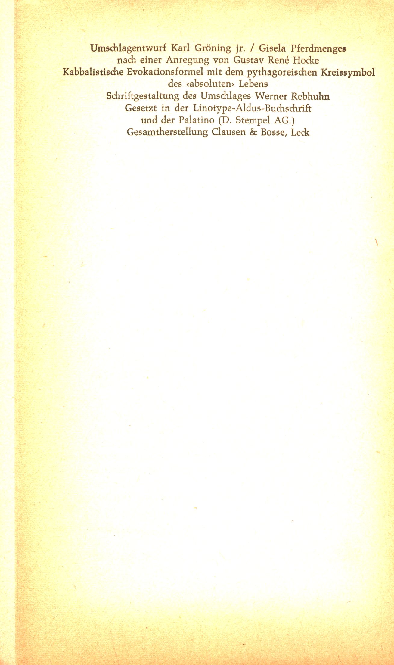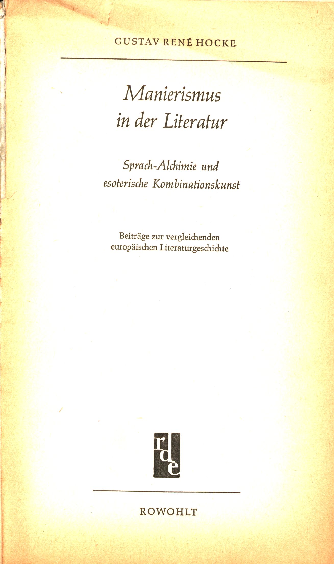 Title information Manierismus in der Literatur : Sprach-Alchimie und esoterische Kombinationskunst / Gustav René Hocke ; Umschlagentwurf Karl Gröning jr., Gisela Pferdmengesnach ; einer Anregung von Gustav René Hocke Personal name Hocke, Gustav René, 1908-1985 (Author) Další autoři Gröning, Karl, jr., 1921-2003 (Bookjacket designer) Pferdmenges, Gisela, 1918-1999 (Bookjacket designer) Hocke, Gustav René, 1908-1985 (Bookjacket designer) Corporation Rowohlt Verlag (nakladatelství) (Publisher) Clausen & Bosse (tiskárna) (Printer) Publication Reinbek bei Hamburg : Rowohlt, [1959] Manufacture Leck : Clausen & Bosse (tiskárna) Scope 339 stran ; 19 cm ISBN (brožováno) Edition Rowohlts deutsche Enzyklopadie. Sachgebiet: Literaturgeschichte, 82/83
