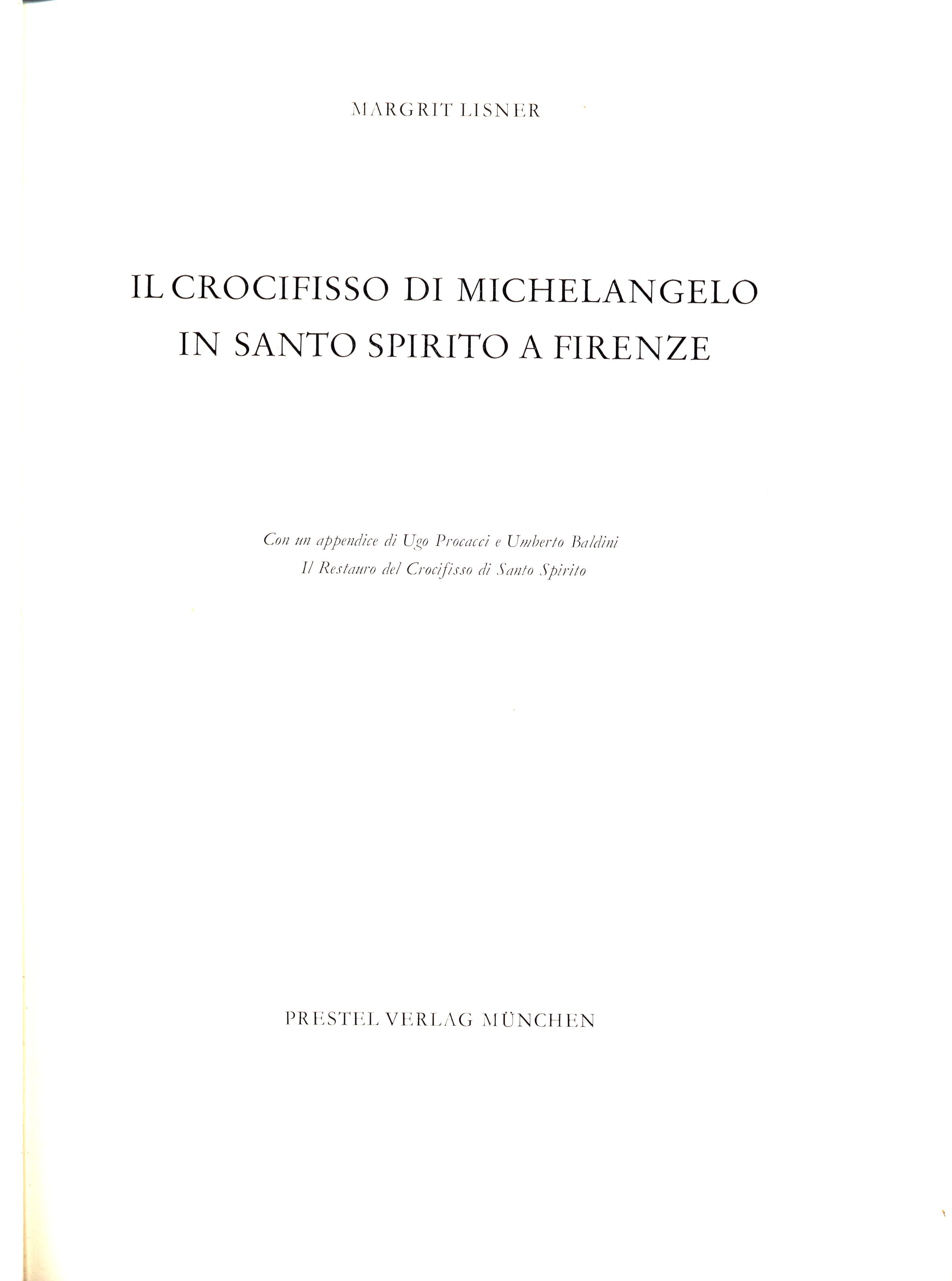 Title information Il crocifisso di Michelangelo in Santo Spirito a Firenze / Margrit Lisner ; con un appendice di Ugo Procacci e Umberto Baldini ; traduzione dal Tedesco di Mina Bacci e Paula Keutner Personal name Lisner, Margrit, 1920-2014 (Author) Další autoři Procacci, Ugo, 1905-1991 (Author of afterword, colophon, etc.) Baldini, Umberto, 1921-2006 (Author of afterword, colophon, etc.) Bacci, Mina (Translator) Keutner, Paula (Translator) Corporation Prestel Verlag (Publisher) Publication München : Prestel Verlag, 1964 Scope 31 stran : fotografie ; 28 cm ISBN (vázáno) Country Germany Language Italian Language of the original German Note Zdobená obálka. - Fotografie, některé barevné. - Poznámky.