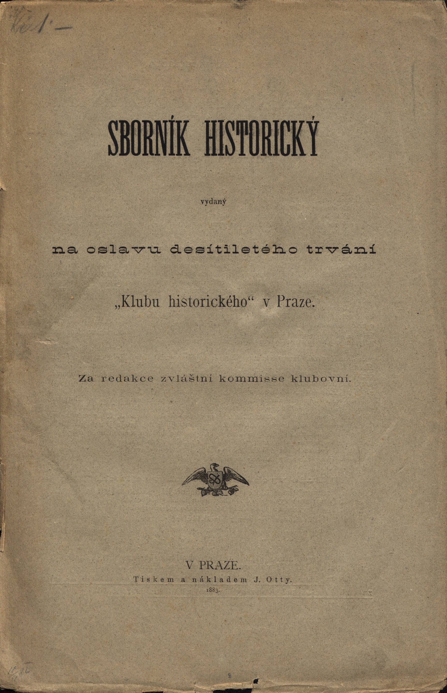 Sborník historický vydaný na oslavu desítiletého trvání Klubu historického v Praze