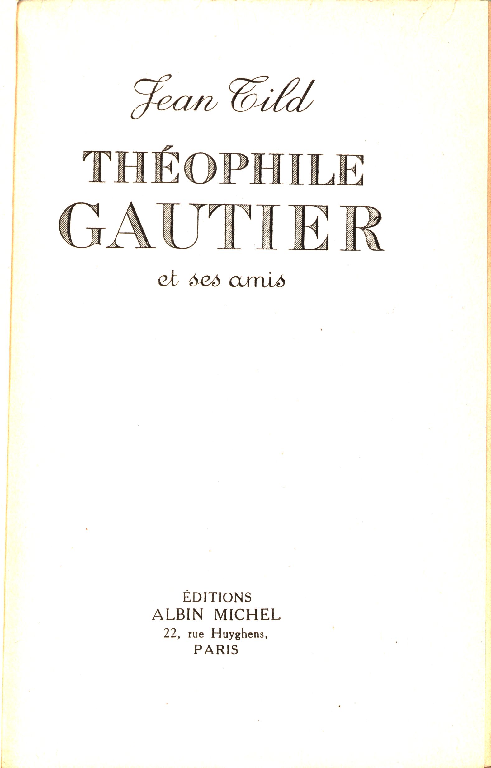 Názvové údaje Théophile Gautier et ses amis / Jean Tild Osobní jméno Tild, Jean, 1875-1960 (Autor) Další autoři Albin Michel (nakladatelství, Paříž, Francie) (Nakladatel, vydavatel) Nakladatel Paris : Albin Michel, 1951 Rozsah 283 stran, 14 stran obrazové přílohy : ilustrace ; 21 cm ISBN (vázáno) Země vyd. Francie Jazyk dok. francouzština Poznámky Barevná zdobená obálka. - Na frontispisu soupis děl autora. - Ilustrace. - Soupis ilustrací.