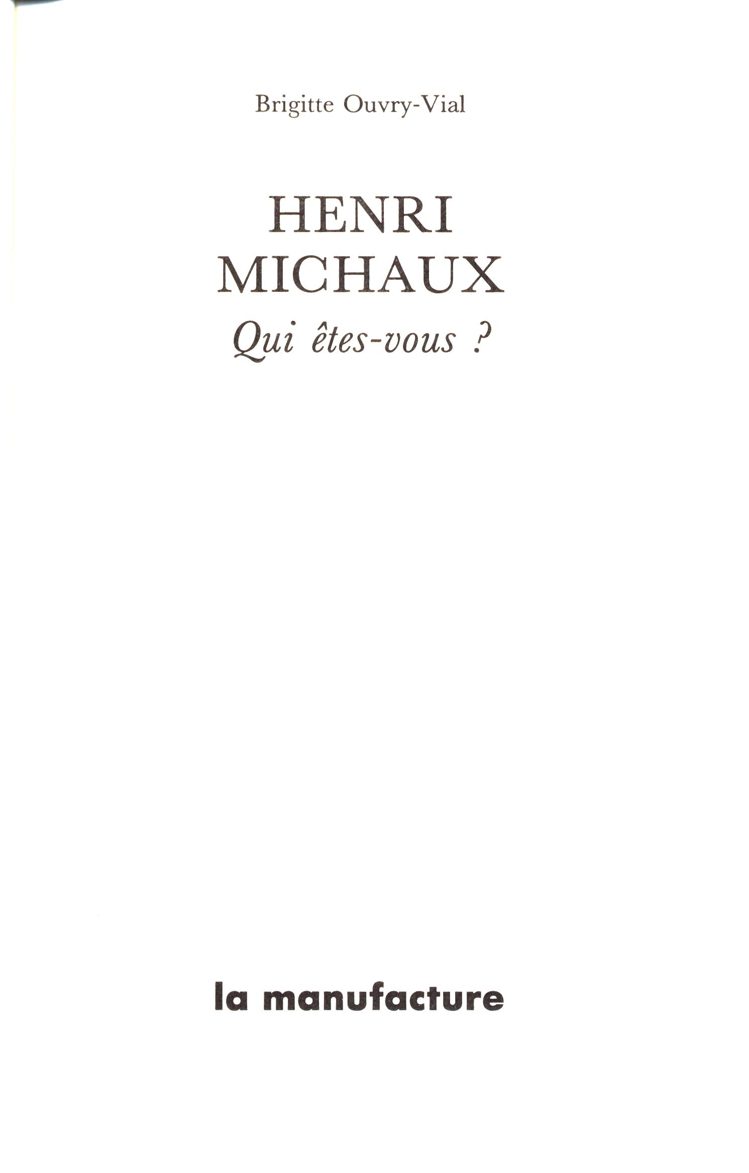 Názvové údaje Henri Michaux : qui etes-vous? / Brigitte Ouvry-Vial Osobní jméno Ouvry-Vial, Brigitte (Autor) Další autoři La Manufacture (Nakladatel, vydavatel) S.E.P.C. (tiskárna) (Tiskař) Nakladatel Lyon : Manufacture, 1989 Výrobce Saint-Amand-Montrond : S.E.P.C. Rozsah 253 stran, 16 stran obrazové přílohy : fotografie, ilustrace ; 20 cm ISBN 2-7377-0129-5 (brožováno) Edice Qui êtes-vous