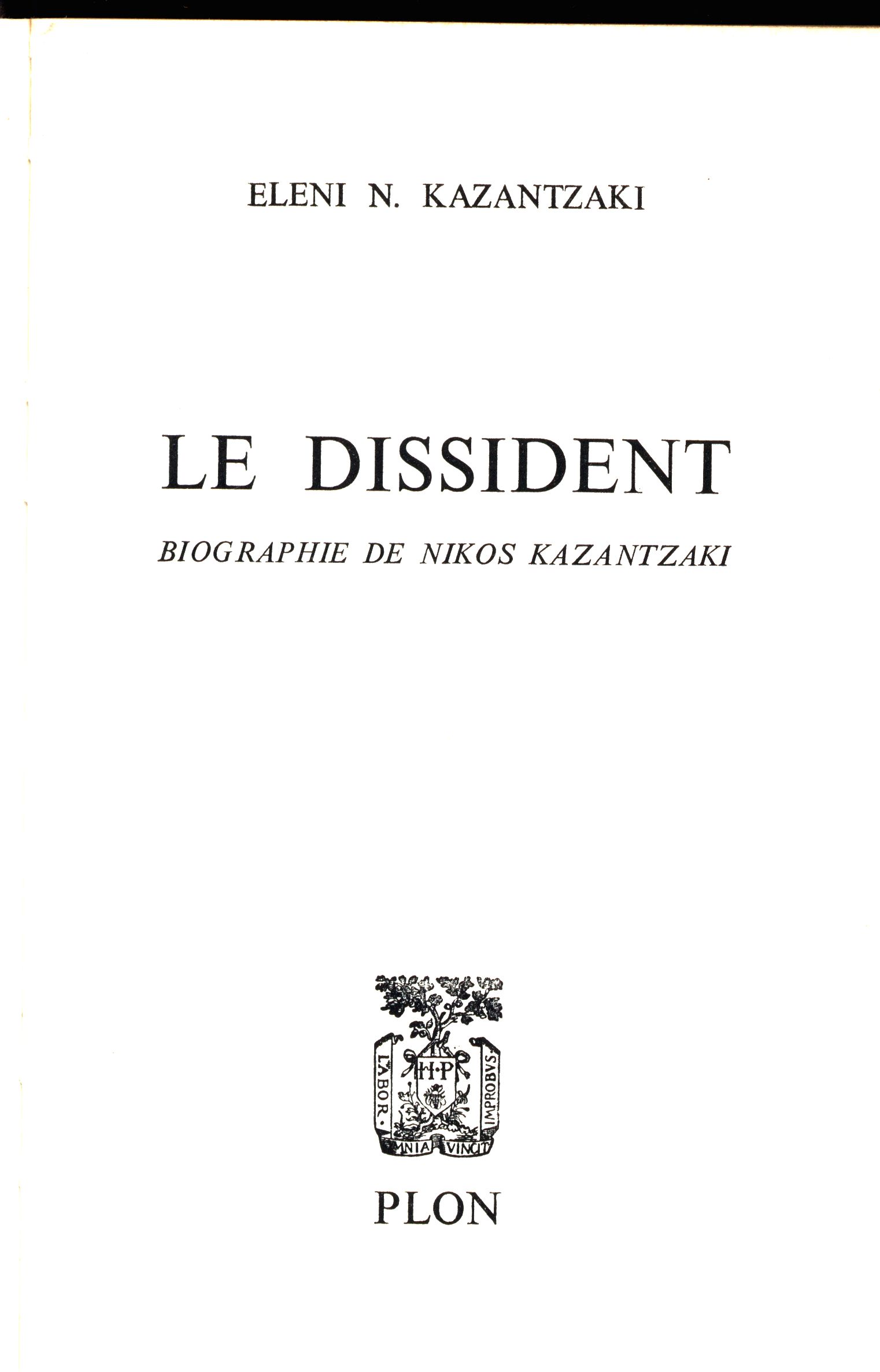 1. Názvové údajeLe dissident : biographie de Nikos Kazantzaki / Eleni N. Kazantzaki