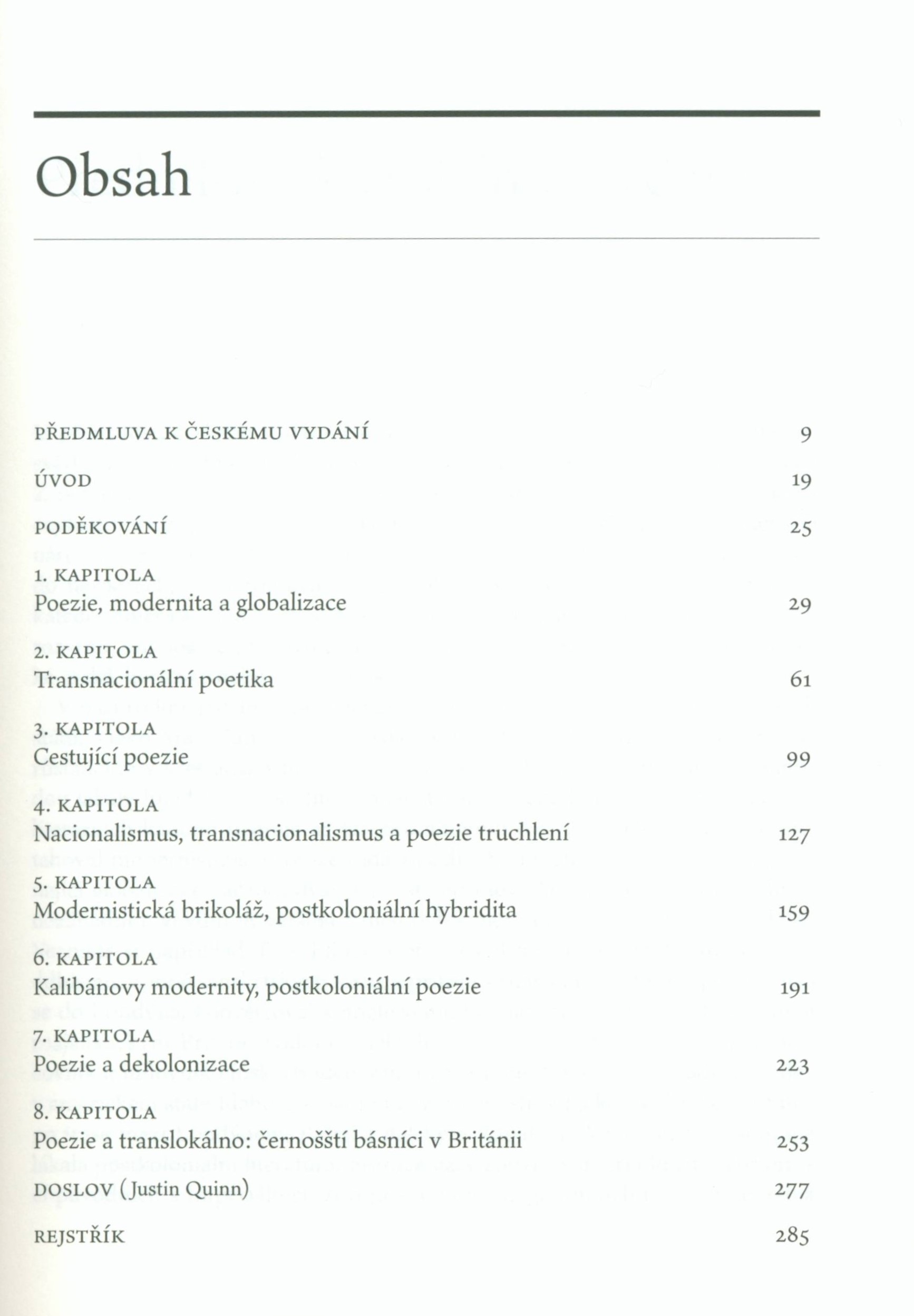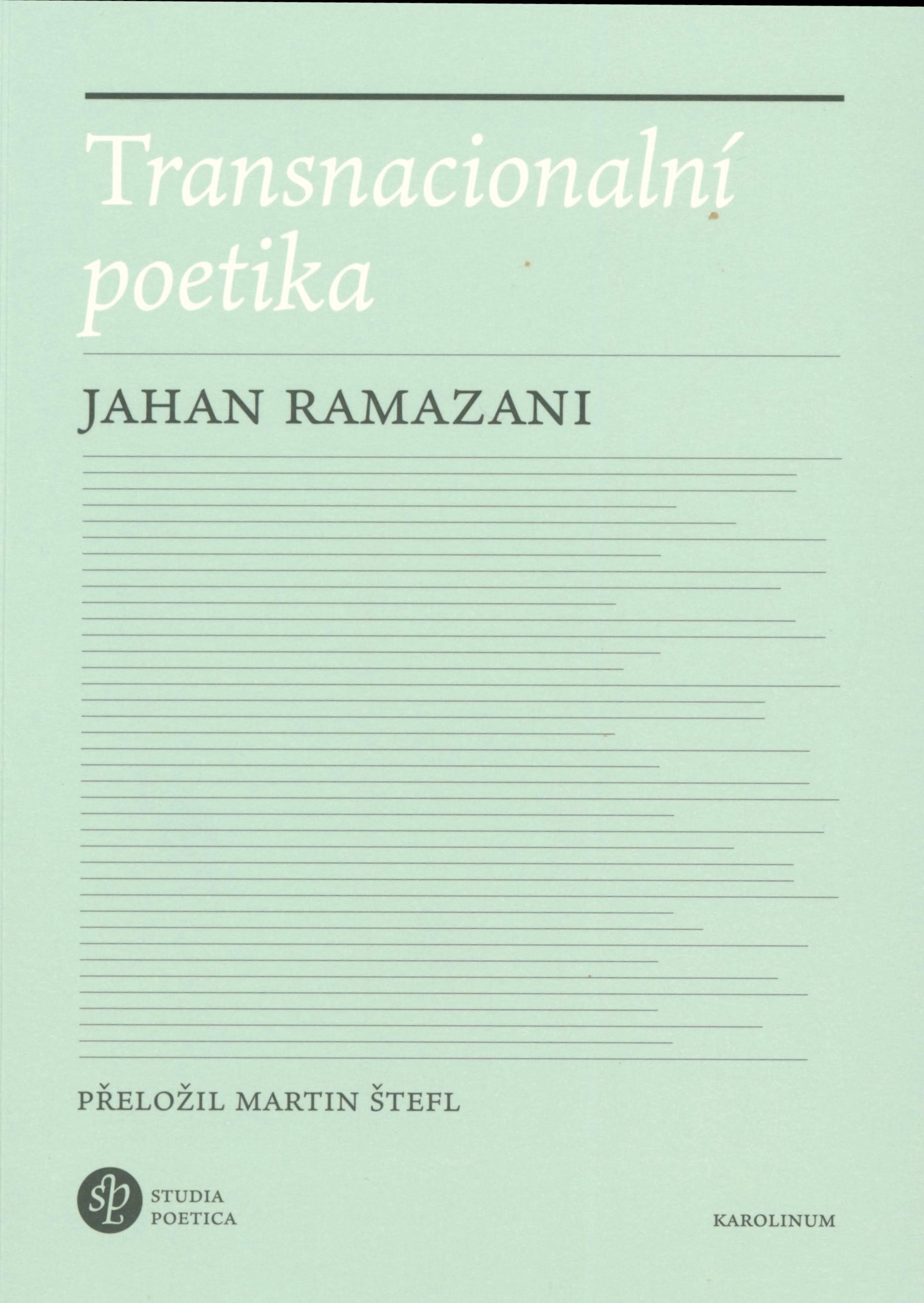 Studia poetica (Univerzita Karlova, Nakladatelství Karolinum)Země vyd. Česko Jazyk dok. čeština * angličtina Jazyk orig. angličtina Poznámky Světle zelená graficky zdobená obálka, dvoubarevný text (i na hřbetu). - Ediční značka na patitulu. - Šedý titulní list, grafické zdobení, dvoubarevný text. - Obsah. - Předmluva k českému vydání J. Ramazani. - Úvod. - Poděkování. - Jednotlivé kapitoly. - Doslov J. Quinn. - Anotace knihy na zadní straně obálky.