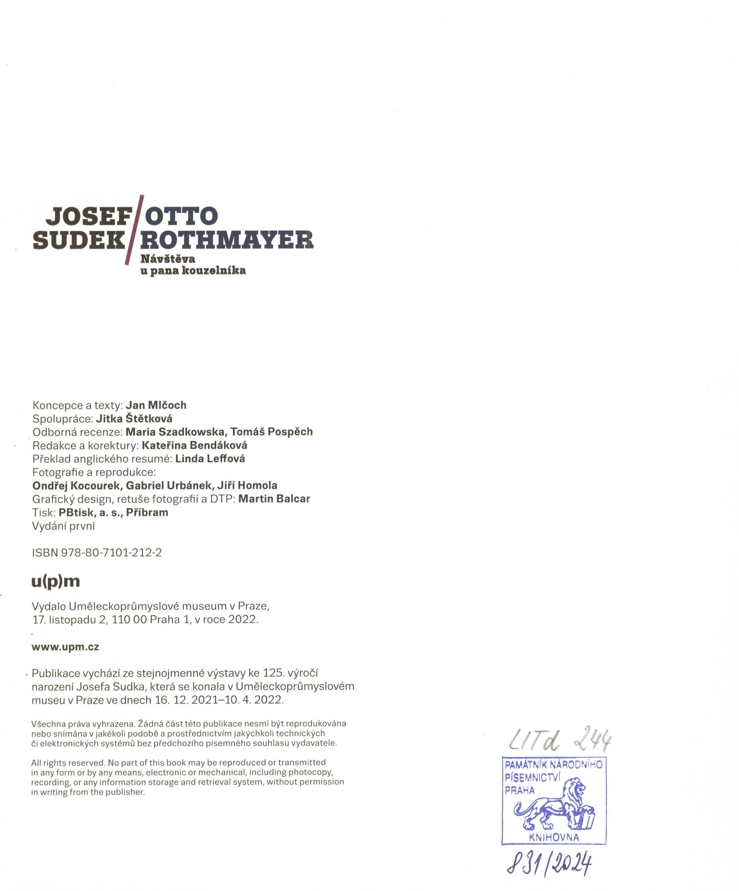"Publikace vychází ze stejnojmenné výstavy ke 125. výročí narození Josefa Sudka, která se konala v Uměleckoprůmyslovém museu v Praze ve dnech 16.12.2021-10.4.2022"--Tiráž.