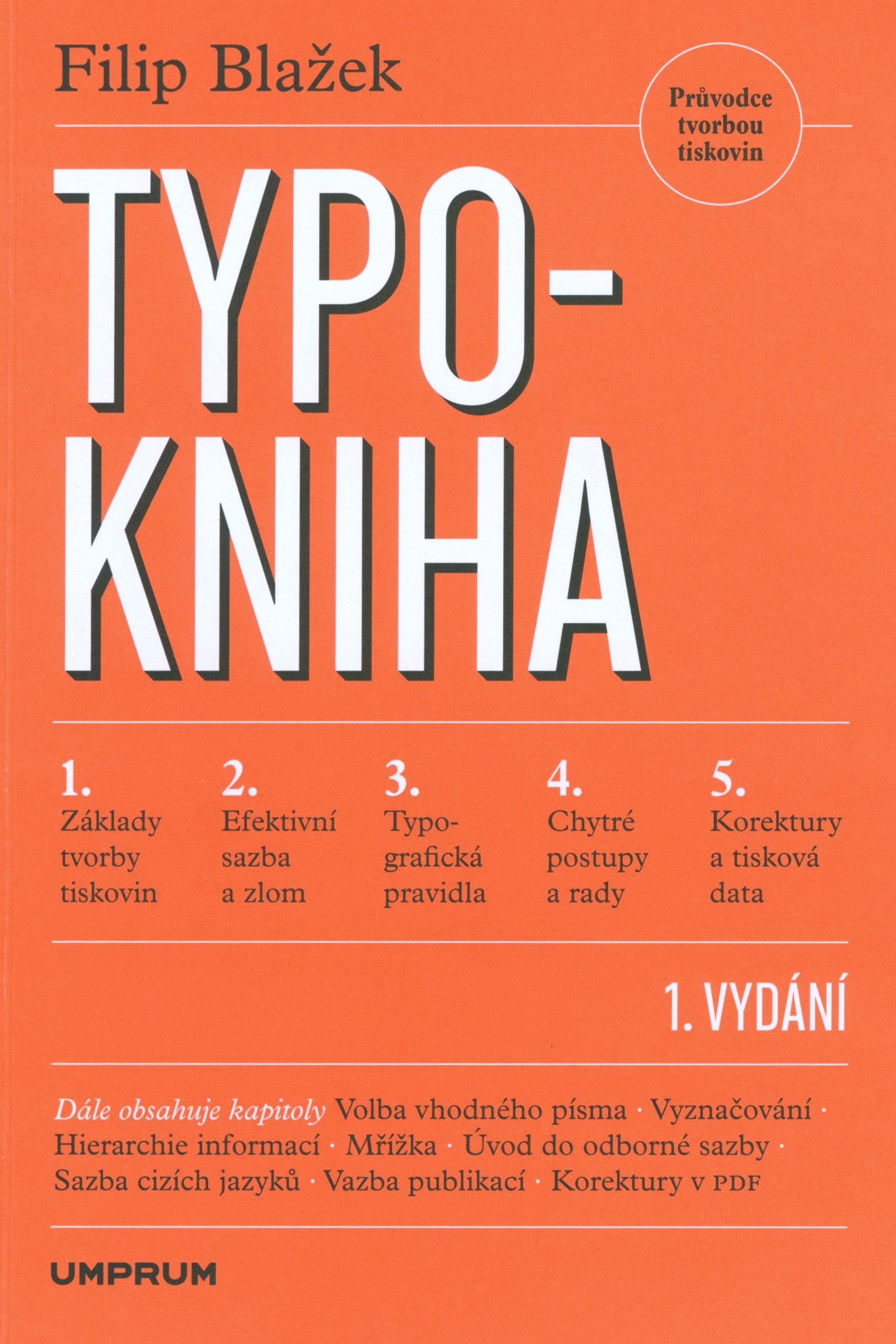 Názvové údaje Typokniha : průvodce tvorbou tiskovin / Filip Blažek ; grafická úprava, sazba, ilustrace a předtisková příprava: Filip Blažek Osobní jméno Blažek, Filip, 1974- (Autor) (Autor) (Knižní grafik) (Sazeč) (Ilustrátor) Další autoři Uměleckoprůmyslová škola (Praha, Česko) (Nakladatel, vydavatel) Serifa (tiskárna) (Tiskař) Údaje o vydání 1. vydání Nakladatel V Praze: UMPRUM, 2020 Výrobce [Praha] : Serifa Rozsah 258 stran : ilustrace (převážně barevné) ; 24 cm ISBN 978-80-88308-12-6 (brožováno) Země vyd. Česko Jazyk dok. čeština Poznámky Oranžová, graficky upravená obálka, dvoubarevný text (i na hřbetu). - Na rubu přední strany obálky tabulka symbolů (možnosti vkládání). - Dvoubarevně graficky zdobený titulní list. - Obsah. - Předmluva. - Jednotlivé kapitoly. - Černobílé i barevné ilustrace, fotografie, tabulky, symboly, znaky ...