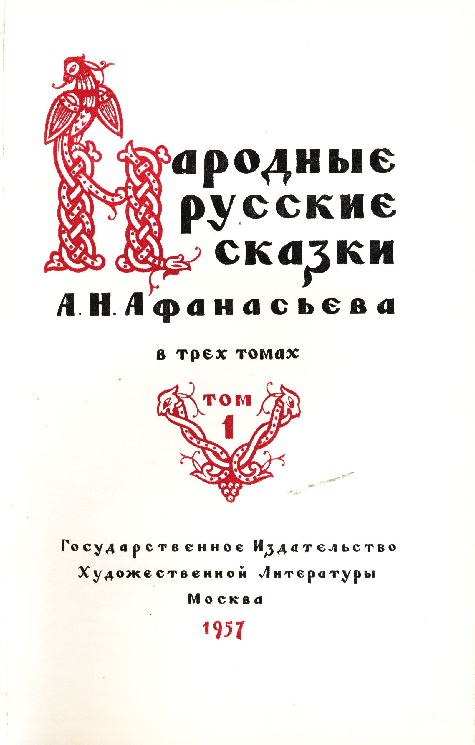 Title information Narodnyje russkije skazki v trech tomach. Tom 1 / A. N. Afanas’jev Personal name Afanas‘jev, Aleksandr Nikolajevič, 1826-1871 (Author) Další autoři Gosudarstvennoje izdatel‘stvo chudožestvennoj literatury (nakladatelství) (Publisher) Publication Moskva : Gosudarstvennoje izdateľstvo chudožestvennoj literatury, 1957 Manufacture Leningrad : Pečatnyj Dvor Scope 514 stran : viněty, fotografie ; 23 cm ISBN (vázáno) Country Russia (Federation) Language Russian Note Obálka se zlatou ražbou. - Portrétní černobílá fotografie na frontispice. - Barevný titulní list s florální vinětou a zdobenou iniciálou. - Zdobené počáteční iniciály, viněty, poznámky pod čarou. - Obsah. - Tiráž.