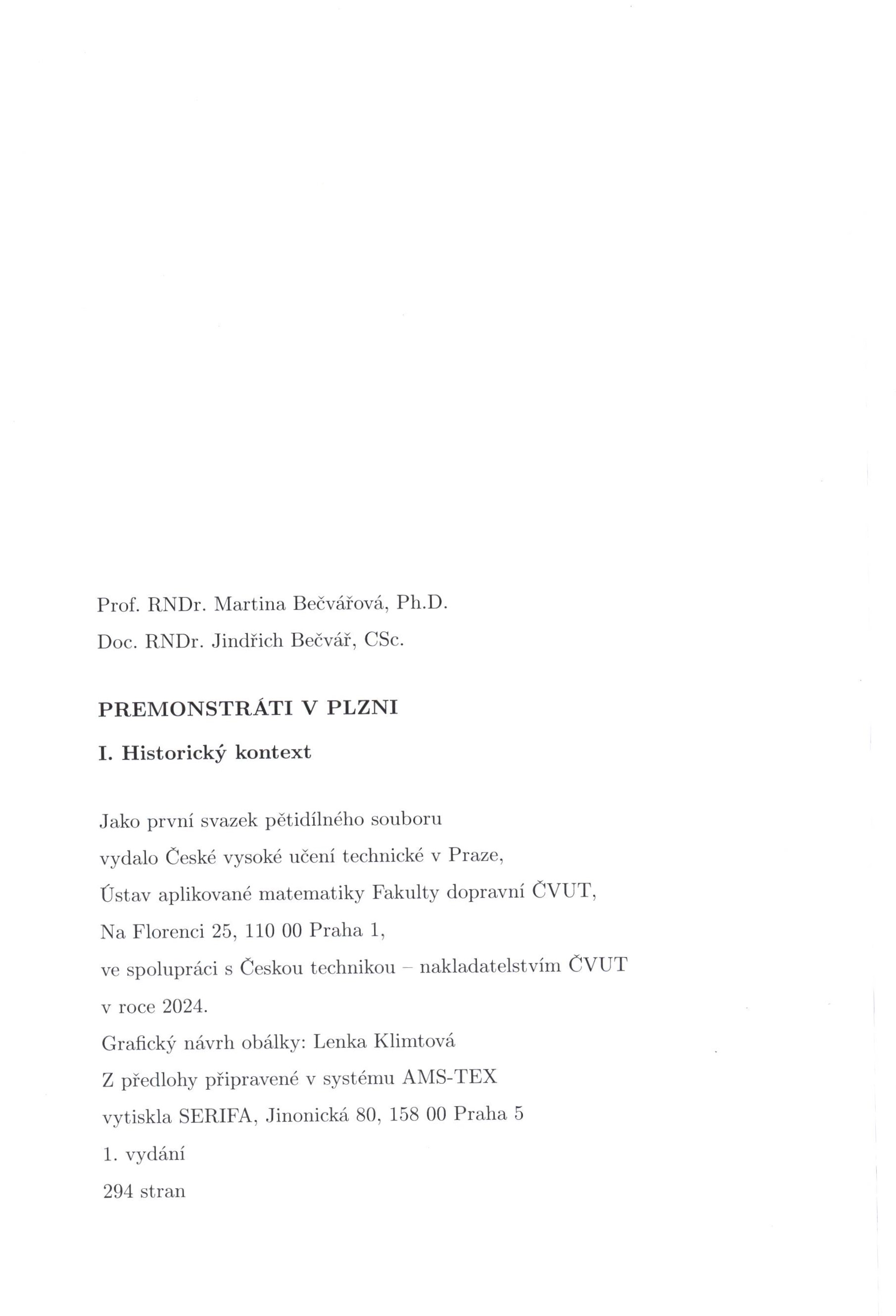 Názvové údaje Premonstráti v Plzni. I, Historický kontext / Martina Bečvářová, Jindřich Bečvář Osobní jméno Bečvářová, Martina, 1971- (Autor) Další autoři Bečvář, Jindřich, 1947- (Autor) Korp. České vysoké učení technické v Praze (Nakladatel, vydavatel) Česká technika - nakladatelství ČVUT v Praze (Nakladatel, vydavatel) Serifa (tiskárna) (Tiskař) Údaje o vydání 1. vydání Nakladatel V Praze : České vysoké učení technické v Praze, 2024 Výrobce Vytiskla SERIFA Rozsah 293 stran ; 24 cm ISBN 978-80-01-07200-4 (soubor) 978-80-01-07201-1 (1. svazek ; vázáno) Edice Dějiny matematiky, (České vysoké učení technické v Praze) ; 66. svazek