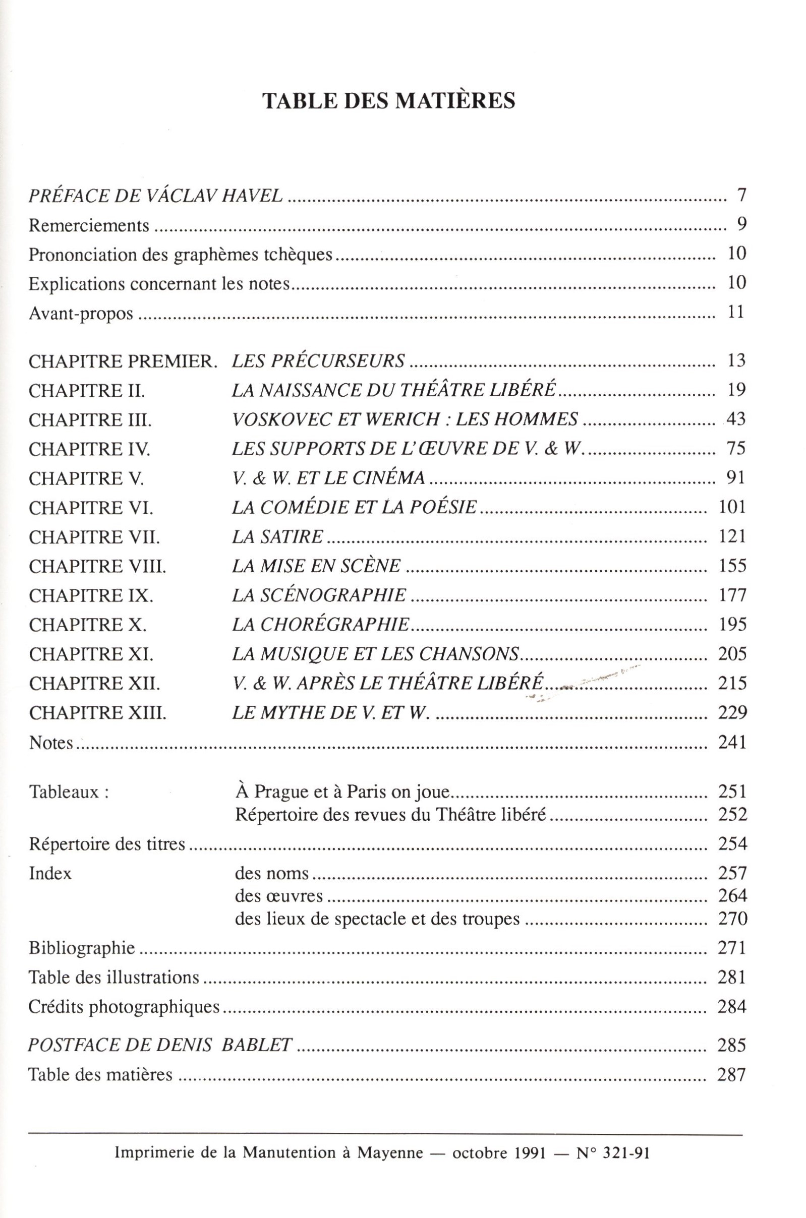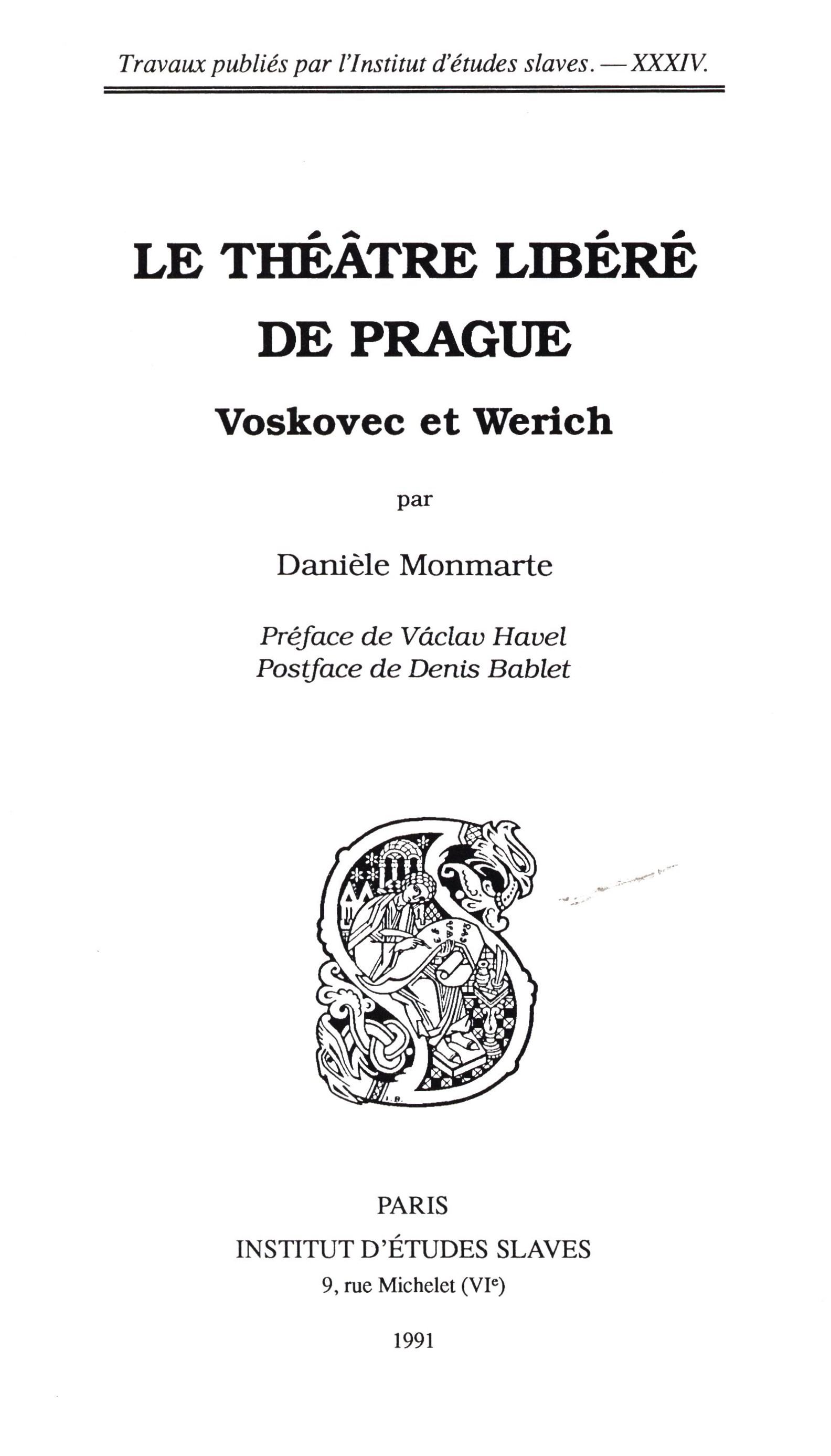 1. Názvové údajeLe théâtre libéré de Prague : Voskovec et Werich / Par Danièle Monmarte ; Préface de Václav Havel ; Postface de Denis Bablet