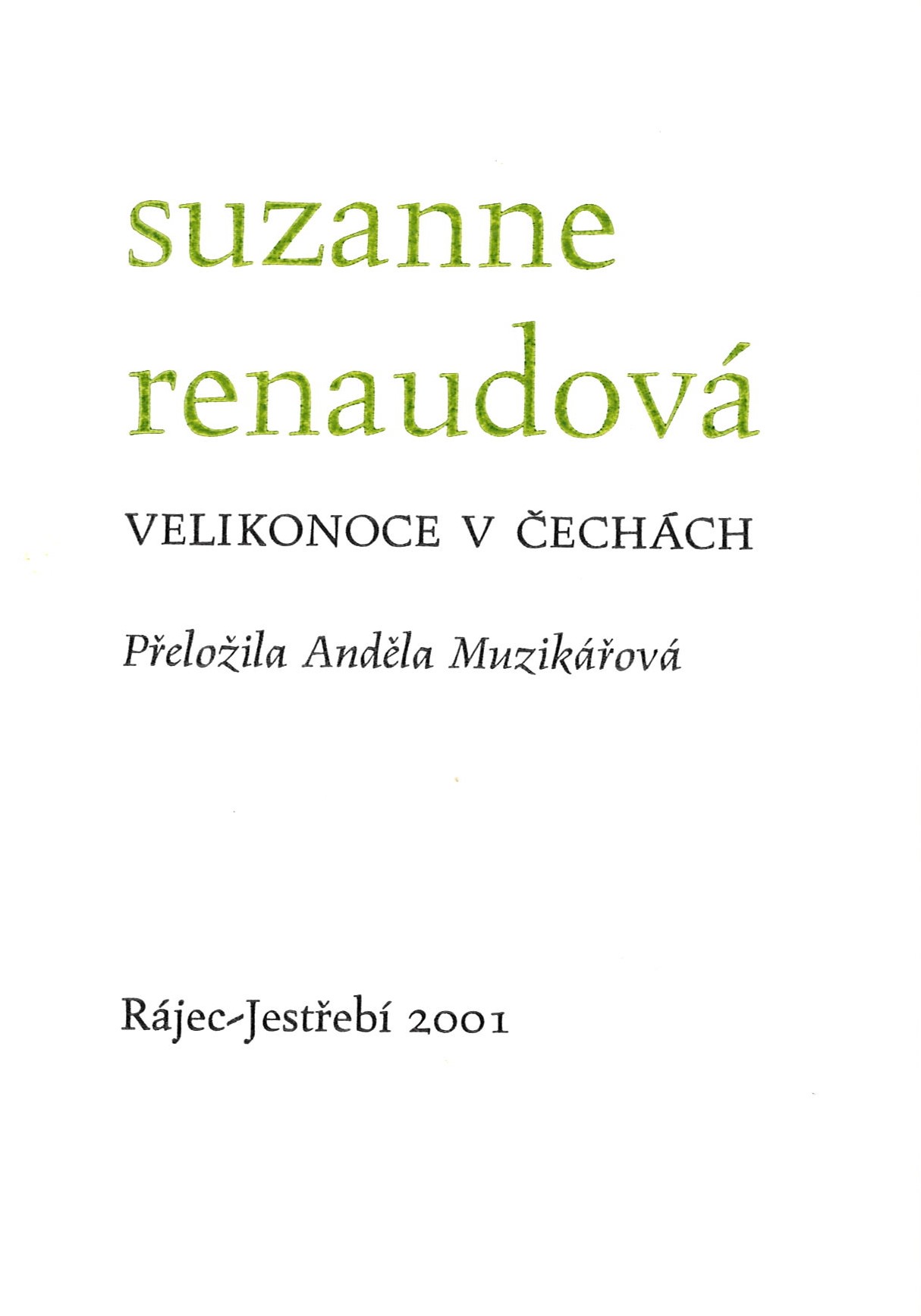 Názvové údaje Velikonoce v Čechách / Suzanne Renaudová ; z francouzského originálu přeložila Anděla Muzikářová ; překlad přehlédl Jiří Reynek Osobní jméno Renaud, Suzanne, 1889-1964 (Autor) Další autoři Muzikářová, Anděla, 1924-2004 (Překladatel) Reynek, Jiří, 1929-2014 (Překladatel) Juránek, Jan (Nakladatel, vydavatel) (Tiskař) Nakladatel Rájec-Jestřebí : [Jan Juránek], 2001 Rozsah 8 stran ; 15 cm ISBN (Bez vazby, volné dvojlisty v obálce) Země vyd. Česko Jazyk dok. čeština Jazyk orig. francouzština Poznámky Soukromý tisk. - Vytištěno pro radost sobě i přátelům k prvním svátkům Vzkříšení v tomto tisíciletí. - 51 výtisk. - Bez vazby, volné dvojlisty vložené v obálce s chlopní. - Na obálce ilustrace. - Bibliofilie