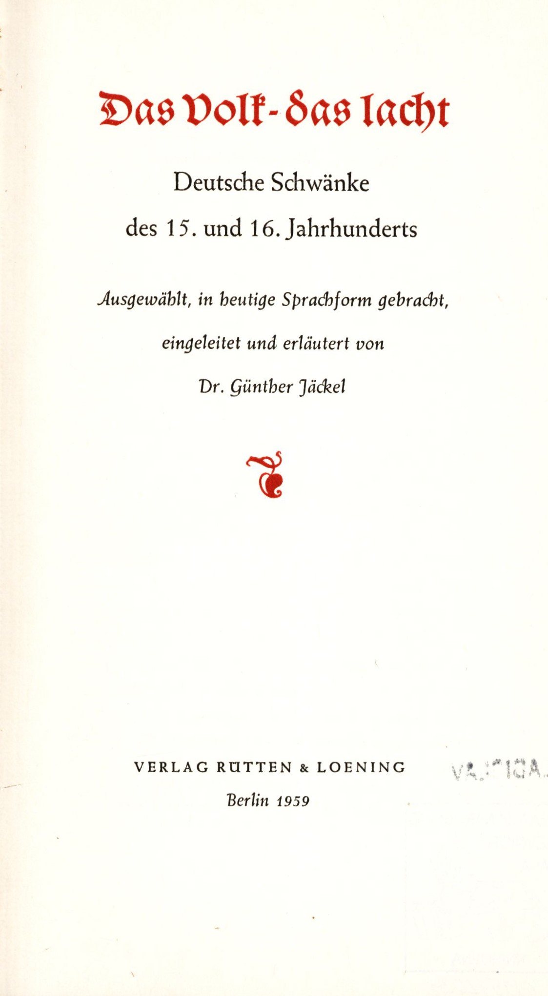 Názvové údaje Das Volk - das lacht : Deutsche Schwänke des 15. und 16. Jahrhunderts / ausgewählt, in heutige Sprachform gebracht, eingeleit und erläutert von Günter Jäckel Osobní jméno Jäckel, Günter, 1926-2011 (Sestavovatel, kompilátor) (Editor) Další autoři Hellmis, Heinz, (Typograf) (Knižní grafik) 1935-2014 Korp. Rütten & Loening (firma) (Nakladatel, vydavatel) Údaje o vydání 1. Auflage Nakladatel Berlin : Rütten & Loening, 1959 Výrobce German Democratic Rebulic : Sachsendruck Plauen Rozsah 406 stran : černobílé ilustrace ; 19 cm ISBN (vázáno) Země vyd. Německo Jazyk dok. němčina Poznámky Barevný ilustrovaný přebal. - Plátěná vazba s ražbou. - Dvoubarevný titulní list s vinětou. - Černobílé ilustrace v textu. - Prameny. - Obsah.
