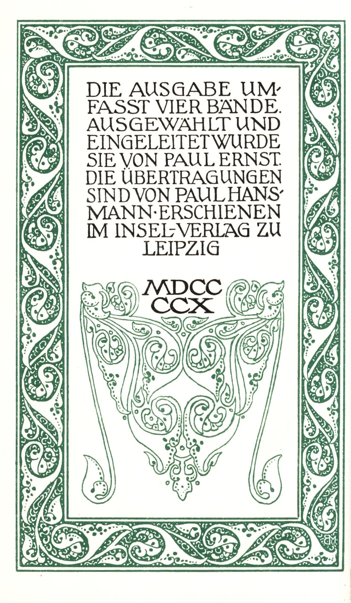 1. Názvové údajeTausend und ein Tag : orientalische Erzählungen. Vierter Band / Ausgewählt und eingeleitet wurde sie von Paul Ernst ; die Übertragungen sind von Paul Hansmann