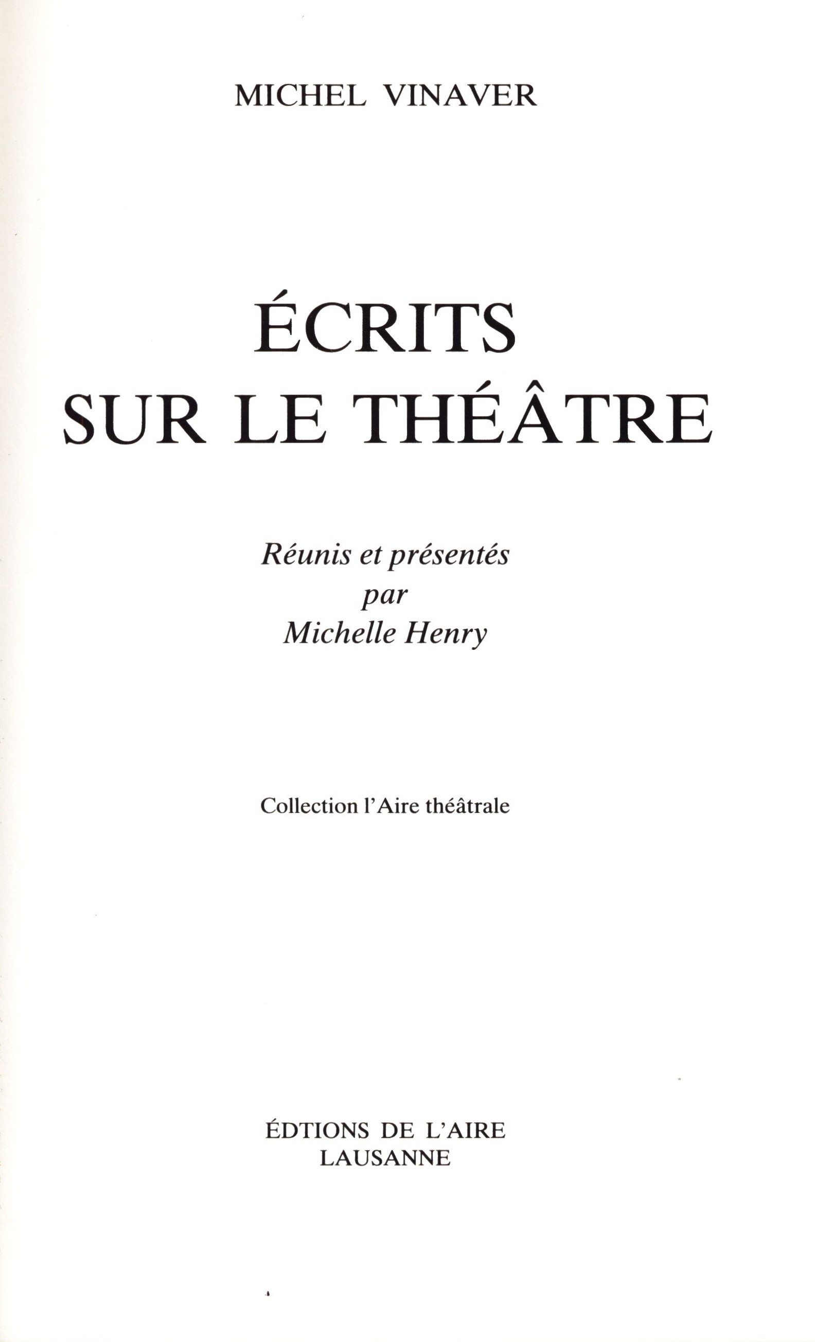 1. Názvové údajeÉcrits sur le théâtre / Michel Vinaver ; Réunis et présentés par Michelle Henry