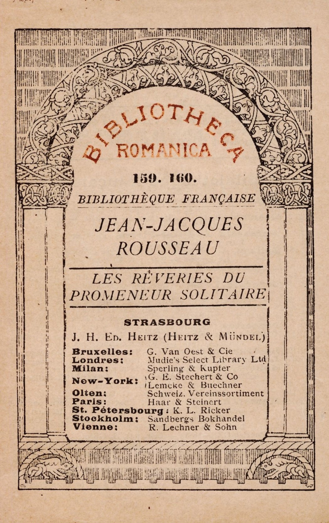 Názvové údaje Les Rêveries du promeneur solitaire / Jean-Jacques Rousseau Osobní jméno Rousseau, Jean-Jacques, 1712-1778 (Autor) Další autoři J. H. Ed. Heitz (nakladatelství) (Nakladatel, vydavatel) Nakladatel Strasbourg : Heitz & Mündel, [1911] Výrobce Heitz & Cie Rozsah 156 stran ; 15 cm ISBN (brožováno) Edice Bibliotheca romanica ; 159. 160.
