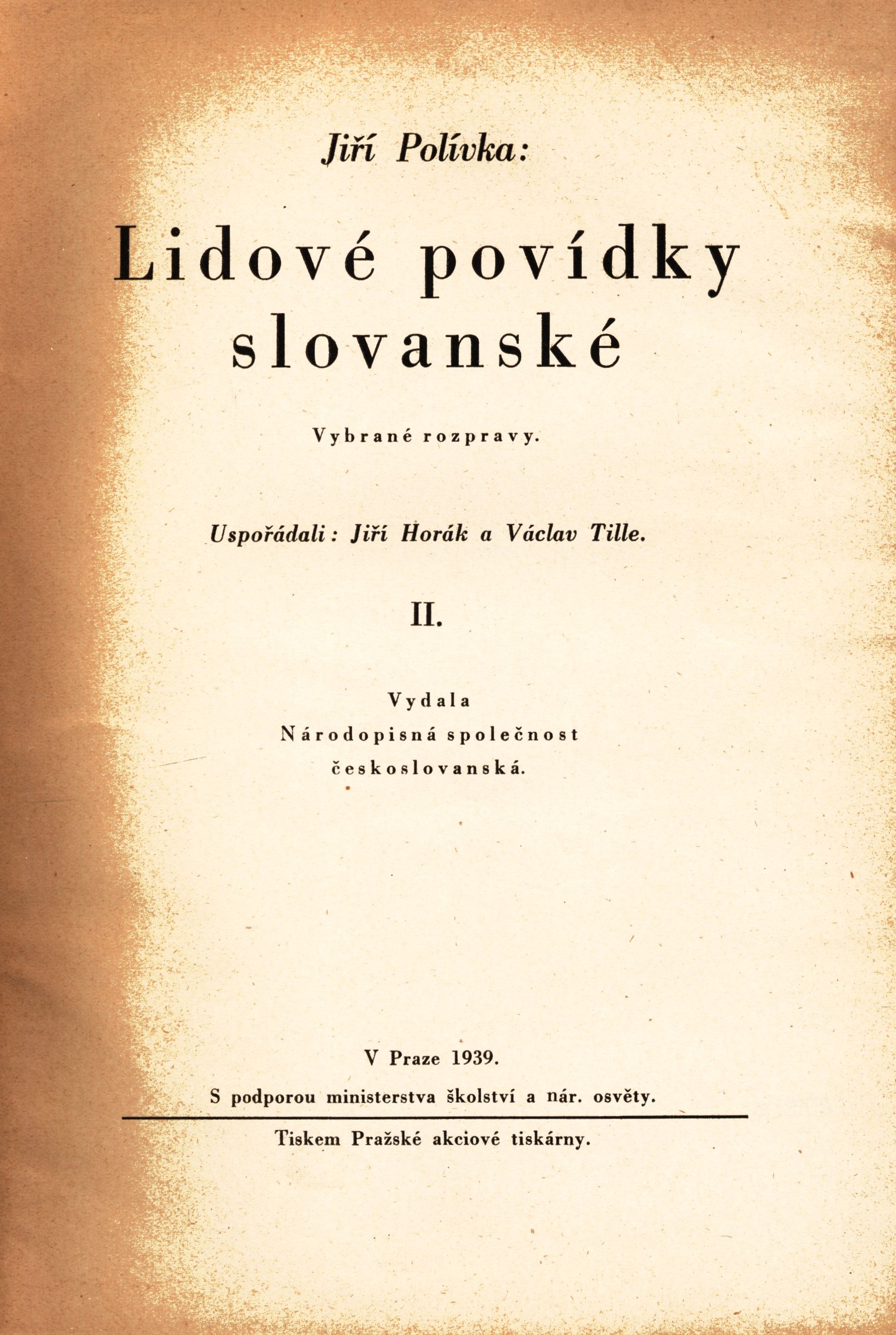 Názvové údaje Lidové povídky slovanské : vybrané rozpravy. II. / Jiří Polívka ; uspořádali: Jiří Horák a Václav Tille Osobní jméno Polívka, Jiří, 1858-1933 (Sestavovatel, kompilátor) Další autoři Horák, Jiří, 1884-1975 (Sestavovatel, kompilátor) Tille, Václav, 1867-1937 (Sestavovatel, kompilátor) Korp. Národopisná společnost českoslovanská (Praha) (Nakladatel, vydavatel) Pražská akciová tiskárna (Tiskař) Nakladatel V Praze : Národopisná společnost českoslovanská, 1939 Výrobce Tiskem Pražské akciové tiskárny Rozsah 195 stran : fotografie ; 25 cm ISBN (brožováno) Země vyd. Česko Jazyk dok. čeština Poznámky Jednoduchá textová obálka. - Černobíly titulní list. - Portrétní fotografie, černobílá. - Poznámky pod čarou.