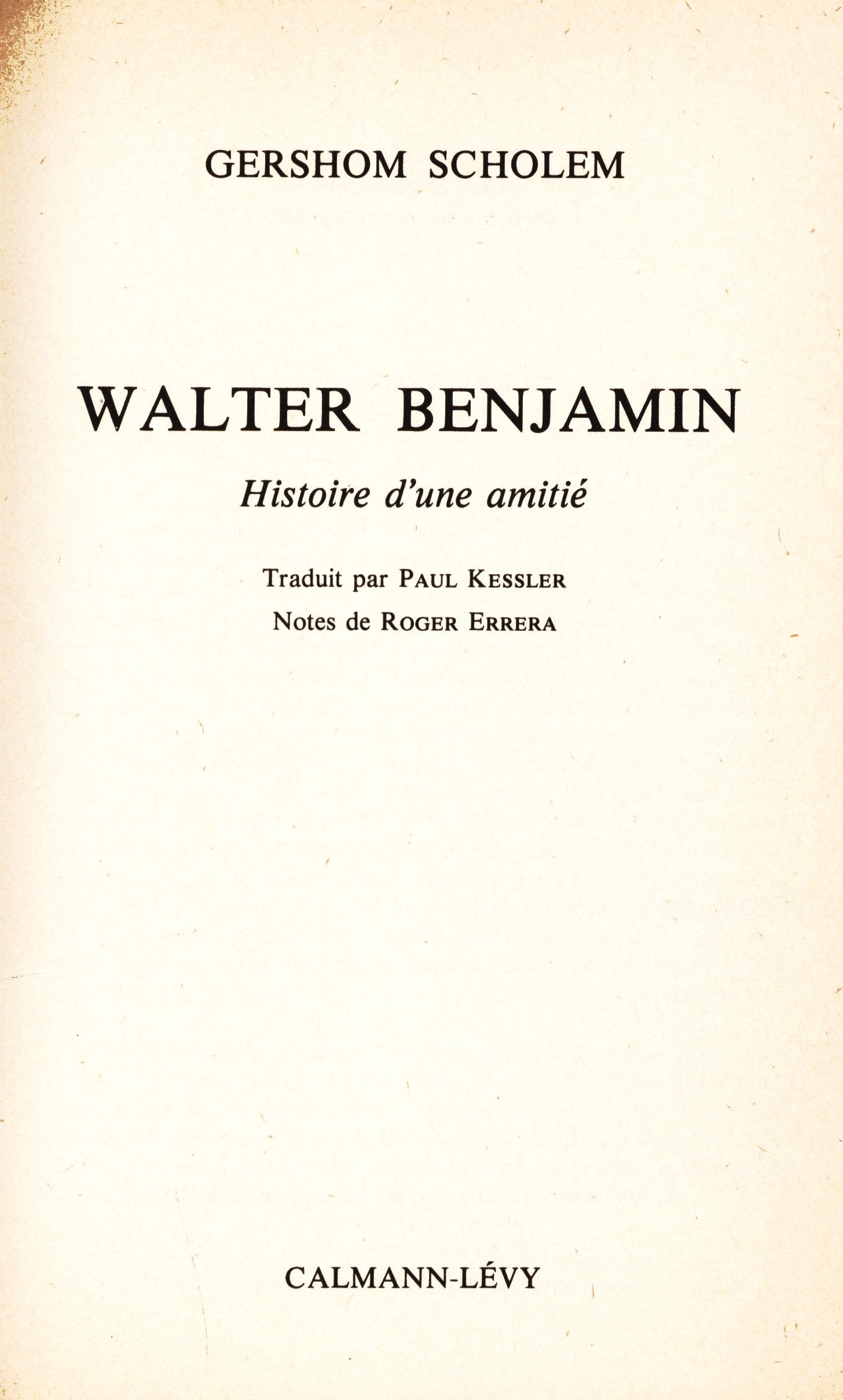 Názvové údaje Walter Benjamin : Historie d'une amitié / Gershom Scholem ; Traduit par Paul Kessler ; Notes de Roger Errera Osobní jméno Scholem, Gershom Gerhard, 1897-1982 (Autor) Další autoři Kessler, Paul (Překladatel) Errera, Roger, 1933-2014 (Editor) Korp. Calmann-Lévy (firma) (Nakladatel, vydavatel) Floch (francouzská tiskárna) (Tiskař) Nakladatel Paris : Calmann-Lévy, 1981 Výrobce Mayenne : Floch Rozsah 262 stran ; 21 cm ISBN 2-7021-0388-X (brožováno) Edice Collection Diaspora