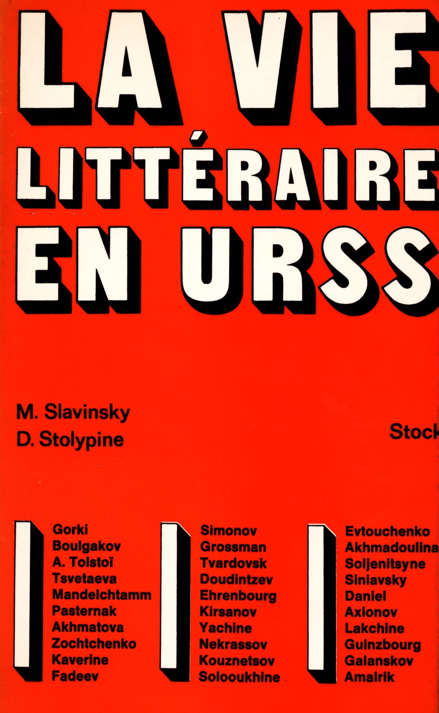 Názvové údaje La Vie littéraire en U.R.S.S. : de 1934 à nos jours / Michel Slavinsky et Dimitri Stolypine Osobní jméno Slavinsky, Michel (Autor) Další autoři Stolypine, Dimitri (Autor) Korp. Stock (firma) (Nakladatel, vydavatel) Firmin-Didot (firma) (Tiskař) Nakladatel Paris : Stock, 1971 Výrobce Paris-Mesnil-Ivry : Firmin-Didot Rozsah 260 stran, 8 stran obrazové přílohy : černobílé fotografie ; 22 cm ISBN (vázáno) Země vyd. Francie Jazyk dok. francouzština Poznámky Barevná typografická obálka. - Černobílý titulní list. - Poznámky pod čarou. - Černobílé fotografie na přílohách. - Obsah.