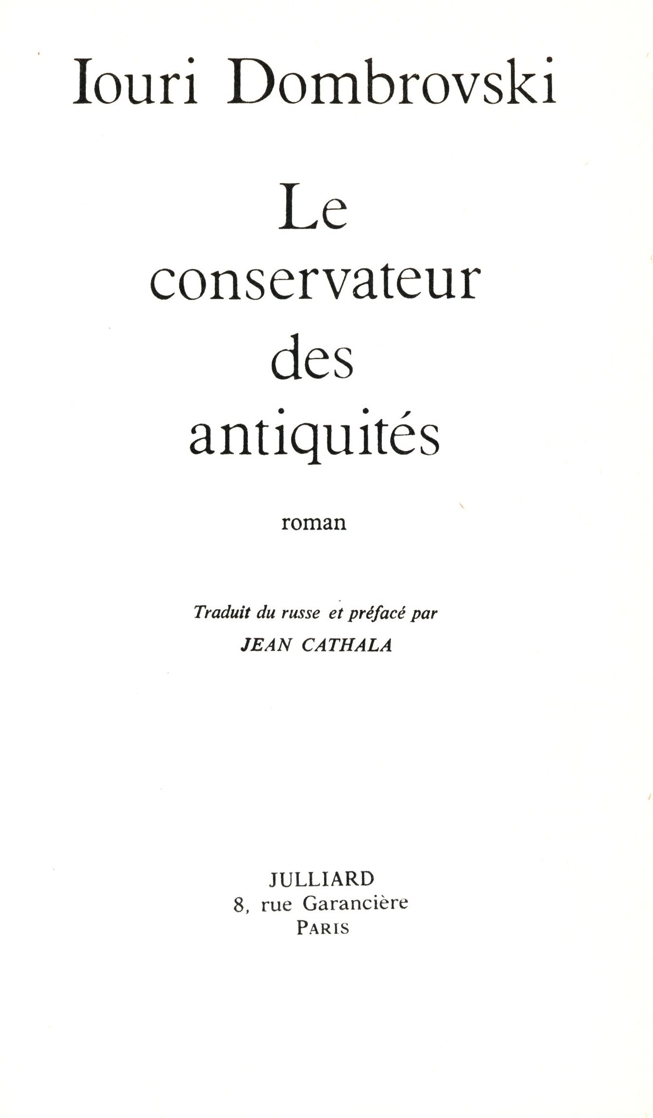 Názvové údaje Le conservateur des antiquités : roman / Iouri Dombrovski ; Traduit du russe et préface par Jean Cathala Osobní jméno Dombrovski, Iouri, 1909-1978 (Autor) Další autoři Cathala, Jean, 1905-1991 (Překladatel) (Autor úvodu atd.) Korp. Éditions Julliard (nakladatelství) (Nakladatel, vydavatel) Imprimerie Carlo Descamps Condé (tiskárna) (Tiskař) Nakladatel Paris : Julliard, 1979 Výrobce Condé-sur-L'Escaut : Carlo Descamps Rozsah 279 stran ; 20 cm ISBN 2-260-00173-4 (brožováno) Země vyd. Francie Jazyk dok. francouzština Jazyk orig. ruština Poznámky Barevná obálka. - Černobílý titulní list. - Obsah.