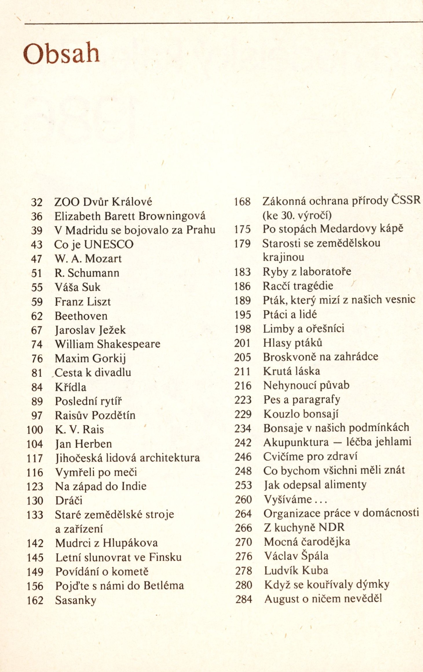Názvové údaje Zemědělský kalendář : 1986 Další autoři Šebor, František (Redaktor, výkonný redaktor) Krejčí, Jiří, 1899-1977 (Autor obálky) (Grafický technik) Korp. Státní zemědělské nakladatelství (Nakladatel, vydavatel) Mír, novinářské závody (tiskárna) (Tiskař) Nakladatel Praha : Státní zemědělské nakladatelství, 1985 Výrobce Mír, nov. záv., n. p. Rozsah 287 stran : ilustrace, křížovky, fotografie ; 20 cm ISBN (brožováno) Země vyd. Česko Jazyk dok. čeština Poznámky Barevná ilustrovaná obálka a přídeští. - Rozložený titulní list s černobílou ilustrací. - Obsah. - Tiráž s ilustrací. - Obsahuje ilustrace, fotografie (převážně černobílé), křížovky tištěné hnědě. - Dvoubarevný text.