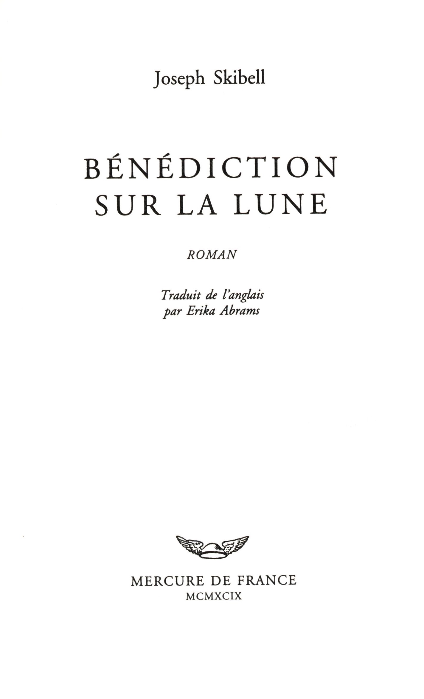 1. Názvové údajeBénédiction sur la lune : roman / Joseph Skibell ; traduit de l'anglais par Erika Abrams