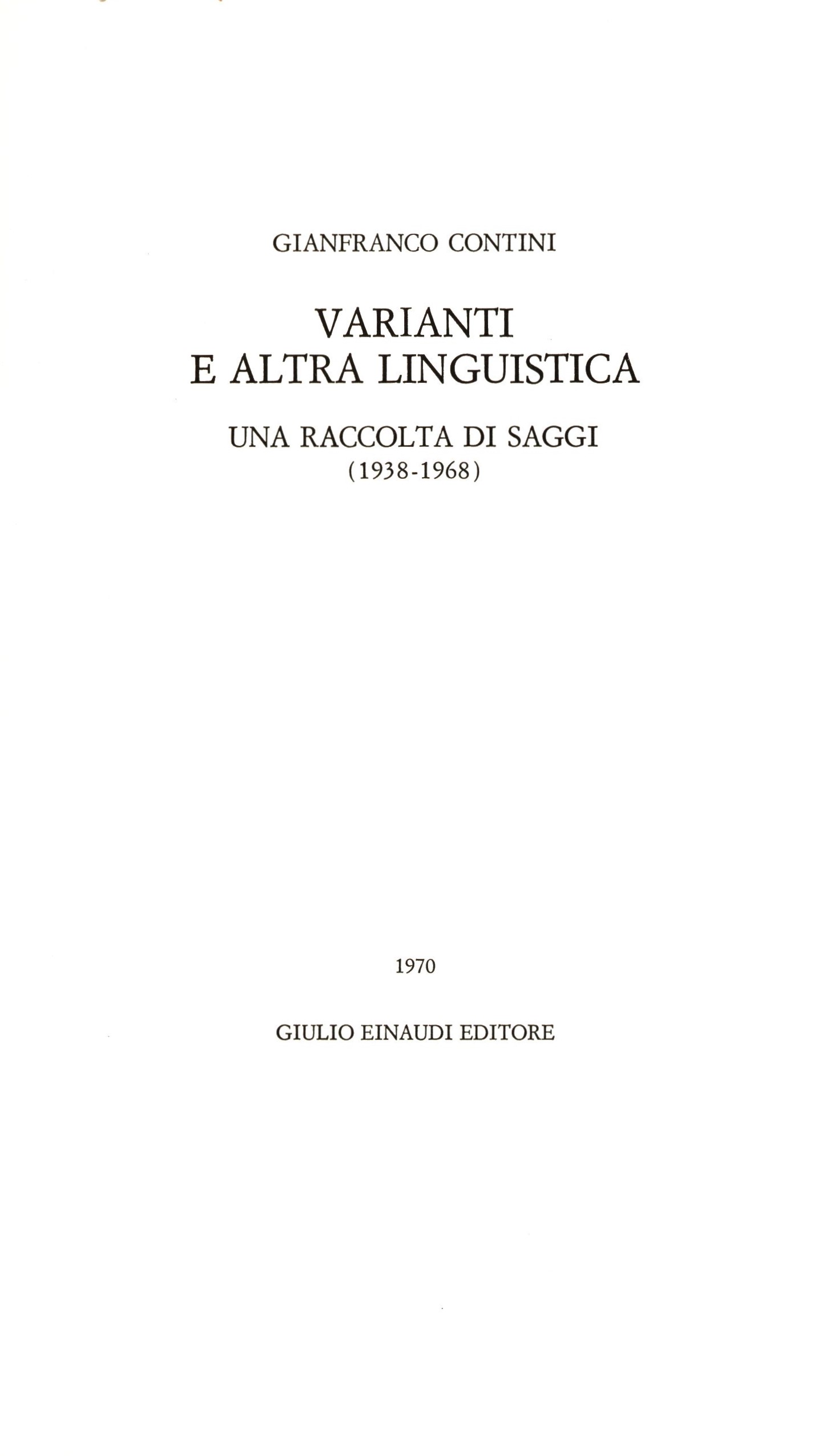 Názvové údaje Varianti e altra linguistica : una raccolta di saggi (1938-1968) / Gianfranco Contini Osobní jméno Contini, Gianfranco, 1912-1990 (Autor) Další autoři Giulio Einaudi editore (Nakladatel, vydavatel) Nakladatel Torino : Giulio Einaudi editore, 1970 Rozsah 686 stran ; 22 cm ISBN (vázáno) Země vyd. Itálie Jazyk dok. italština Poznámky Obálka s nakladatelským signetem. - Titulní list. - Obsah. - Poznámky pod čarou. - Částečně neořezané listy.