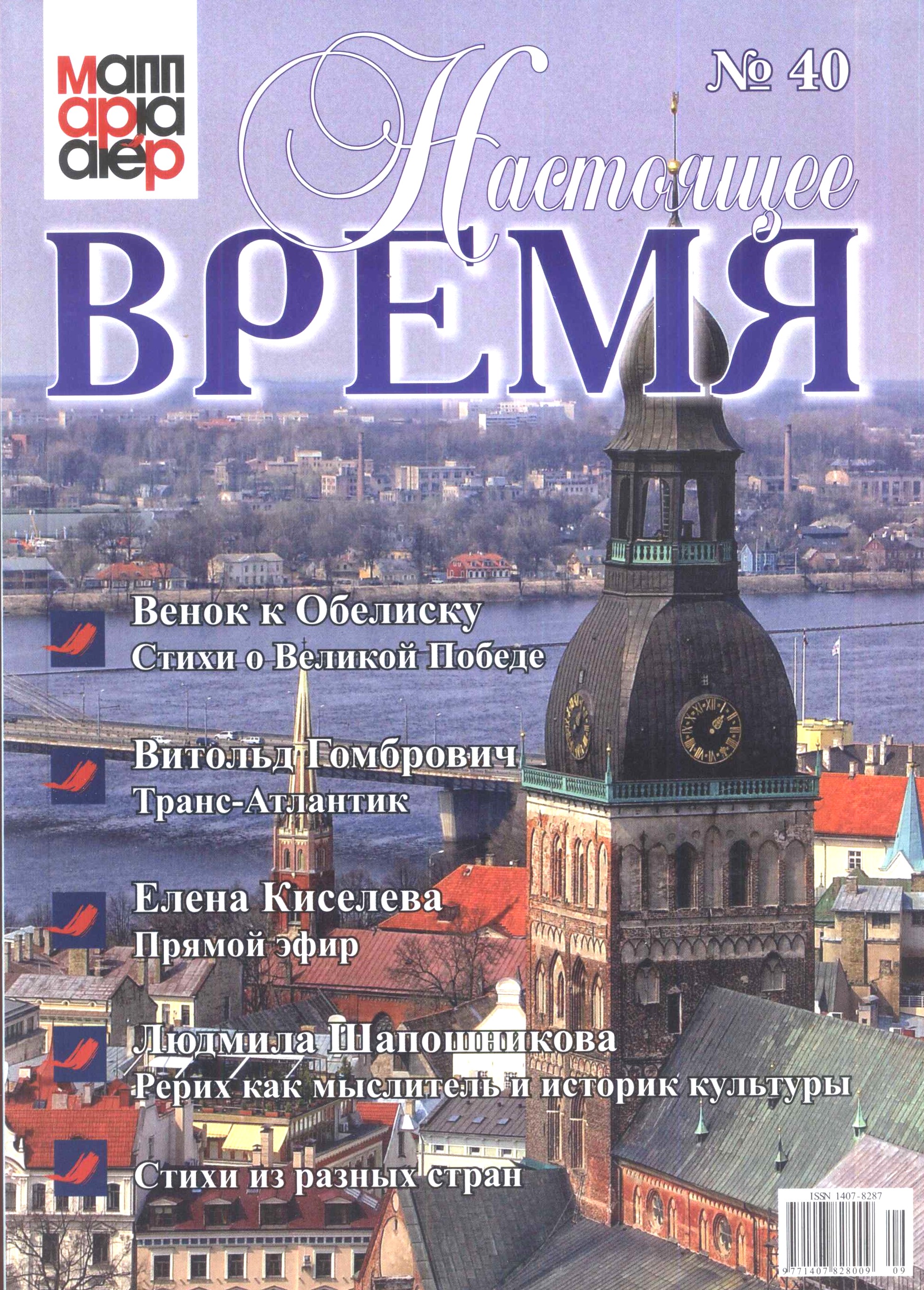 Názvové údaje Nastojaščeje vremja : ježemesjačnyj žurnal Meždunarodnoj associaciji pisatelej i publicistov. 40 Nakladatel Riga : Meždunarodnaja associacija pisatelej i publicistov, [2010] Rozsah 128 stran : ilustrace, fotografie, portréty ; 23,5 cm Země vyd. Litva Jazyk dok. ruština Poznámky Barevná obálka. - Čb. portréty, fotografie a ilustrace.