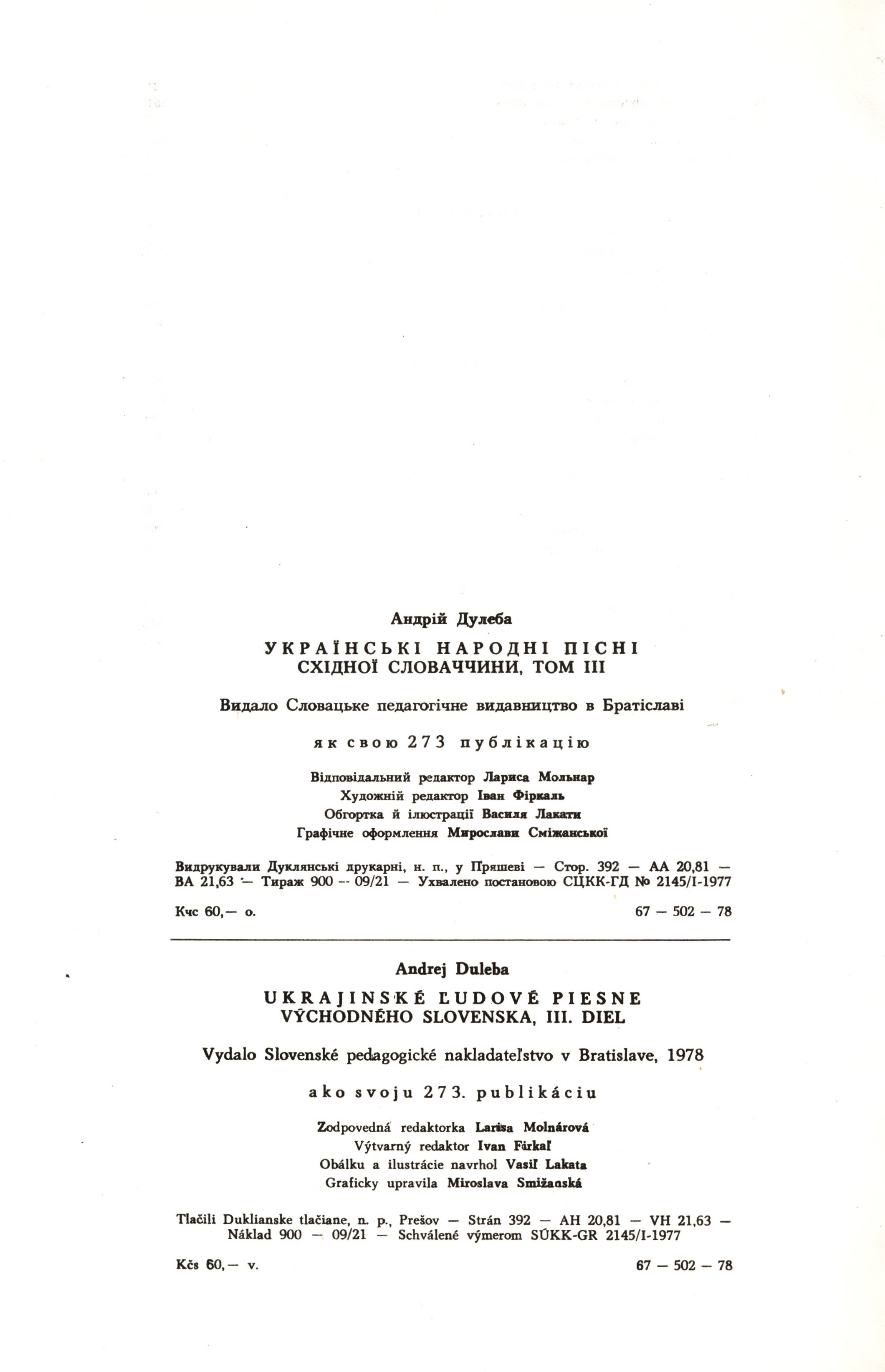 Poznámka o dalších původcích Obálku a ilustrace Vasil' Lakata, graficky upravila Miroslava Smižanská Jazyková pozn. Tiráž v ukrajinštině i slovenštině Druh dok. monografie Klíčová slova ukrajinská literatura * zpěvník * lidové písně * folklor * folklorní texty * slovenské lidové písně MDT 821.161.2 * 398.8 * 39 * 398.8(437.6) Call number Track No. Location Info JVladislav 2860 0068/2025 Sbírka