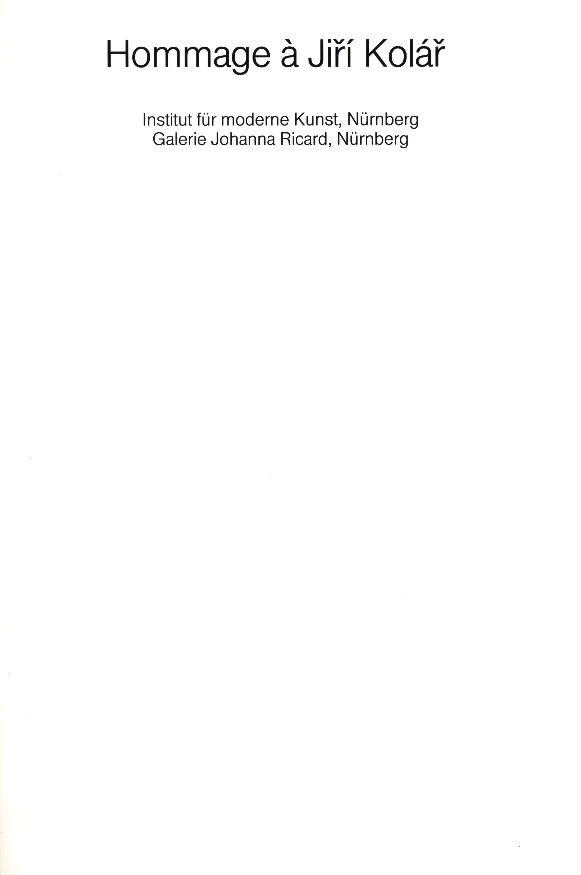 1. Názvové údajeHommage à Jiří Kolář / Institut für Moderne Kunst, Nürnberg ; Galerie Johanna Ricard, Nürnberg