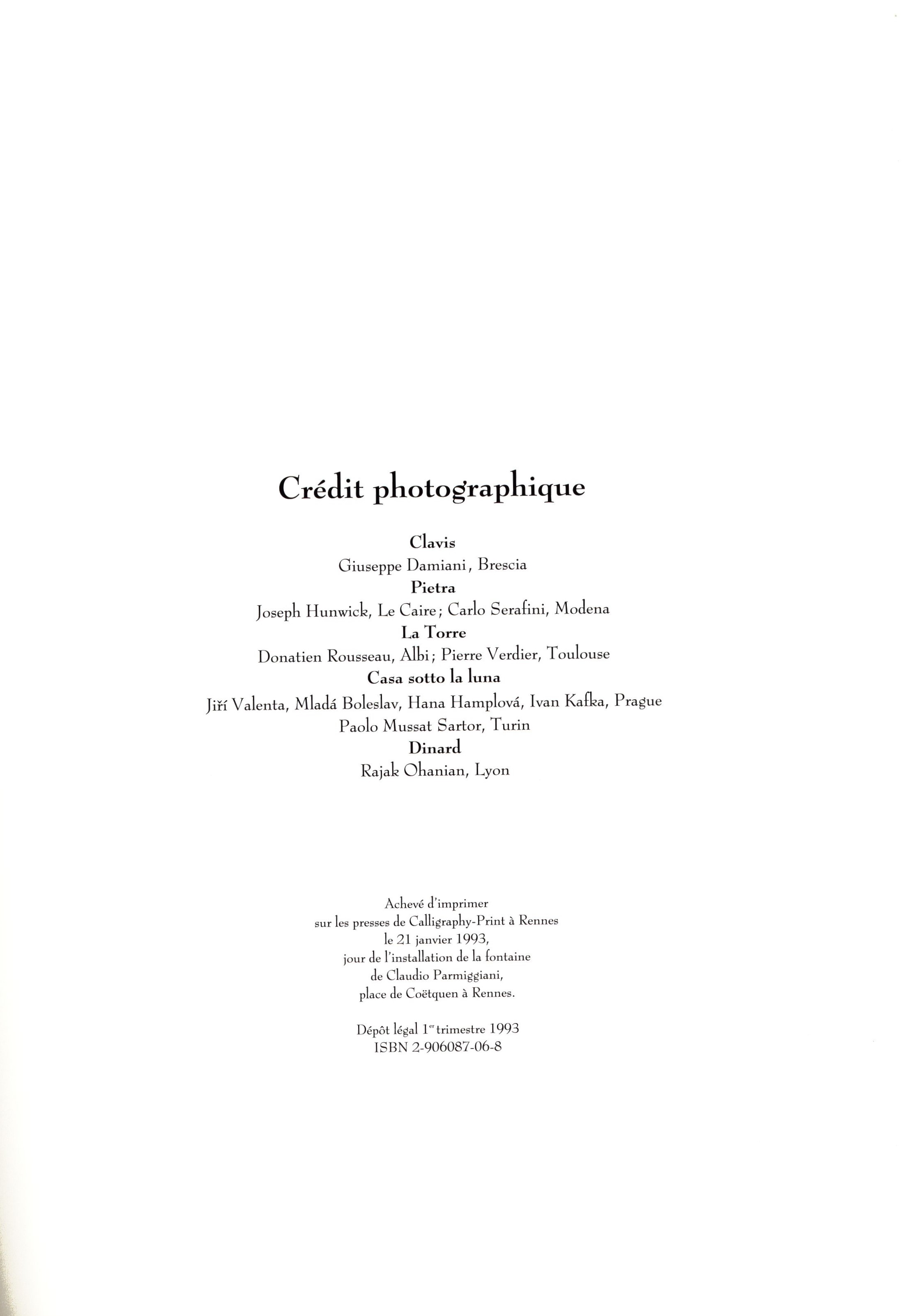 Názvové údaje Une Sculpture : 1975-1991 / textes de Claudio Parmiggiani, Philippe Hardy, Hans-Ulrich Obrist Osobní jméno Parmiggiani, Claudio, 1943- (Autor) (Umělec) Další autoři Obrist, Hans Ulrich, 1968- (Autor) Hardy, Philippe, 1950- (Autor) Nakladatel Rennes : Ville de Rennes, 1993 Výrobce Calligraphy-Print Rozsah 118 stran : černobílé fotografie ; 28 cm ISBN 2-906087-06-8 (brožováno) Země vyd. Francie Jazyk dok. více jazyků Poznámky Typografická obálka. - Více jazyčné texty, vč. češtiny. - Zvýrazněné iniciály. - Černobílé fotografie. - Tiráž.