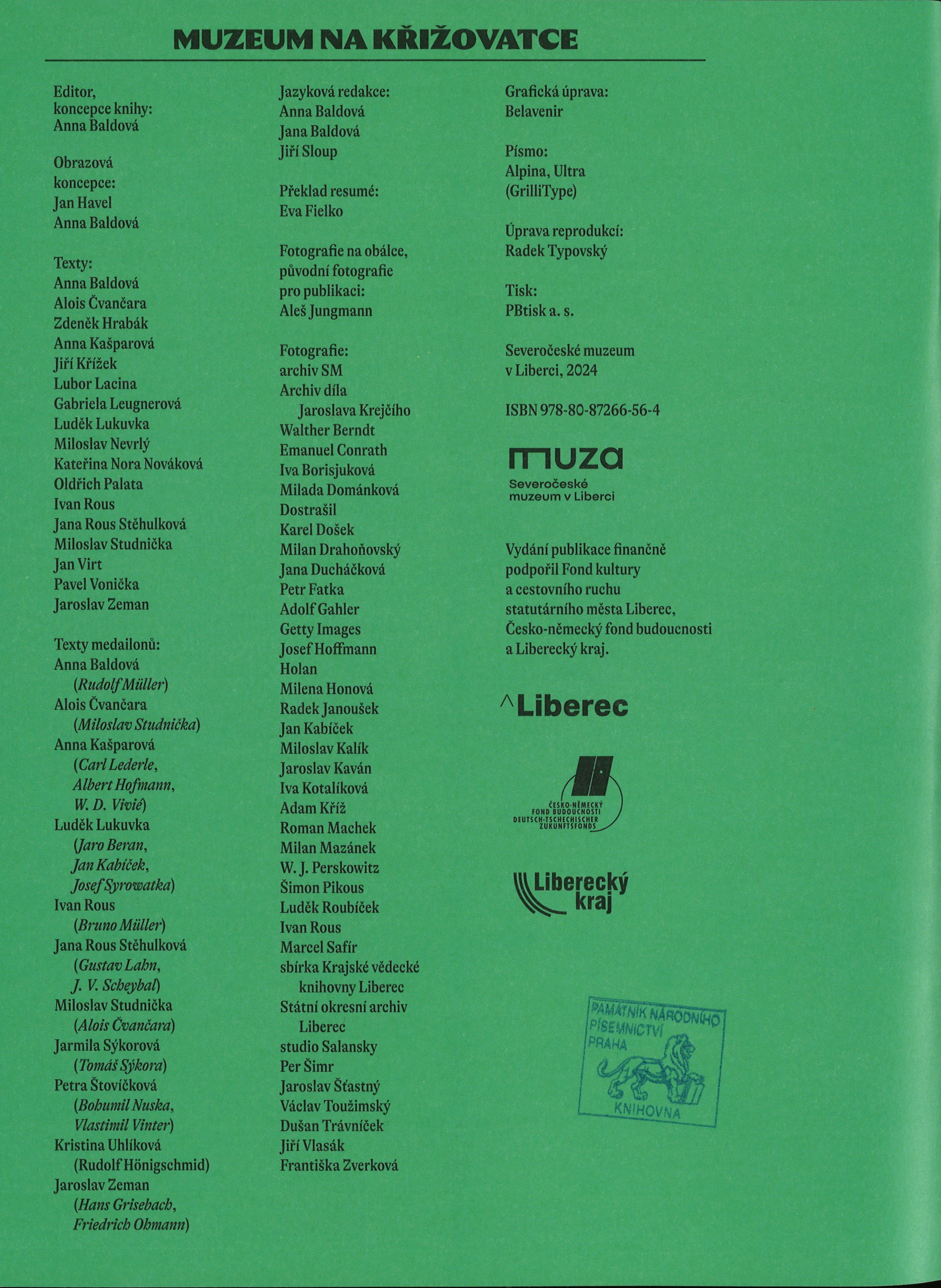 Title information Muzeum na křižovatce : 1873-2023 / Anna Baldová a kol. ; grafická úprava: Belavenir Personal name Baldová, Anna, 1982- (Author) Další autoři Severočeské muzeum (Liberec, Česko) (Publisher) PBtisk (tiskárna) (Printer) Belavenir Design Studio (typografické a grafické studio) (Book designer) Publication [Liberec] : Severočeské muzeum v Liberci, 2024 Manufacture [Příbram] : PBtisk a.s. Scope 463 stran : ilustrace (převážně barevné), fotografie, portréty, faksimile ; 29 cm ISBN 978-80-87266-56-4 (vázáno) Country Czech Republic Language Czech Note Výpravná publikace se zdobenou vazbou, bez přebalu. - Na vazbě fotografie muzea. - Barevné předsádky. - Rozložený titulní list s dvoustránkovou barevnou fotografií. - Úvod Jiřího Křížka a Anny Baldové. - Bohatý obrazový materiál, černobílé i barevné fotografie, portréty. - Zdobená i zadní strana obálky s anotací tištěnou lesklým písmem. - Poznámky