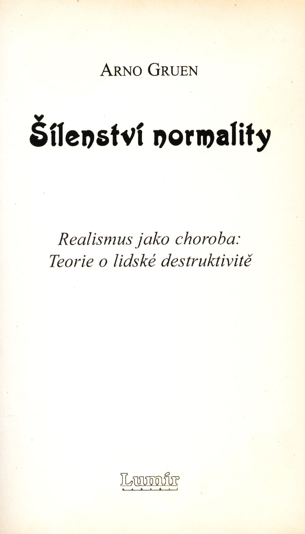 Poznámka o dalších původcích Překlad a fotografie na obálce Lumír Nahodil. Anotace Studie německého psychoterapeuta zkoumá kořeny lidské destruktivity, jež spočívají ve snaze lidského rozumu o nastolení pořádku. Šílenství se velice snadno maskuje duševním zdravím, neboť současný svět pokládá klam a lest za "chování přizpůsobené skutečnosti". Za blázny tak jsou považováni jedinci, odmítající aktuální ztrátu hodnotových principů a normalitu zosobňují ti, kteří opustili klasické kořeny lidství. Tato falešná optika přináší sebeutlačování - jedinec odmítá vlastní já, poněvadž ohrožuje jeho mocenskou pozici. Potlačení sebe sama a empatických schopností formuje touhu po pomstě či posedlost smrtí. Gruen odhaluje přičiny patologického fenomenu v současném lidském vývoji, jenž vede k rozvoji osobnosti, řízené vnějším prostředím. Jediné východisko z krize nachází v rozvoji lidského nitra, spojeného s vnějším světem. Pc. L2a2 Jazyková pozn. Přeloženo z němčiny Druh dok. monografie Poznámky o skryté bibliografii a rejstřících Obsahuje bibliografii, bibliografické odkazy a rejstřík Název originálu Wahnsinn der Normalität Klíčová slova psychiatrie * duševní choroby * násilí * lidská agresivita * studie Call number Track No. Location Info Listopad 0064 0398/2025 Sbírka