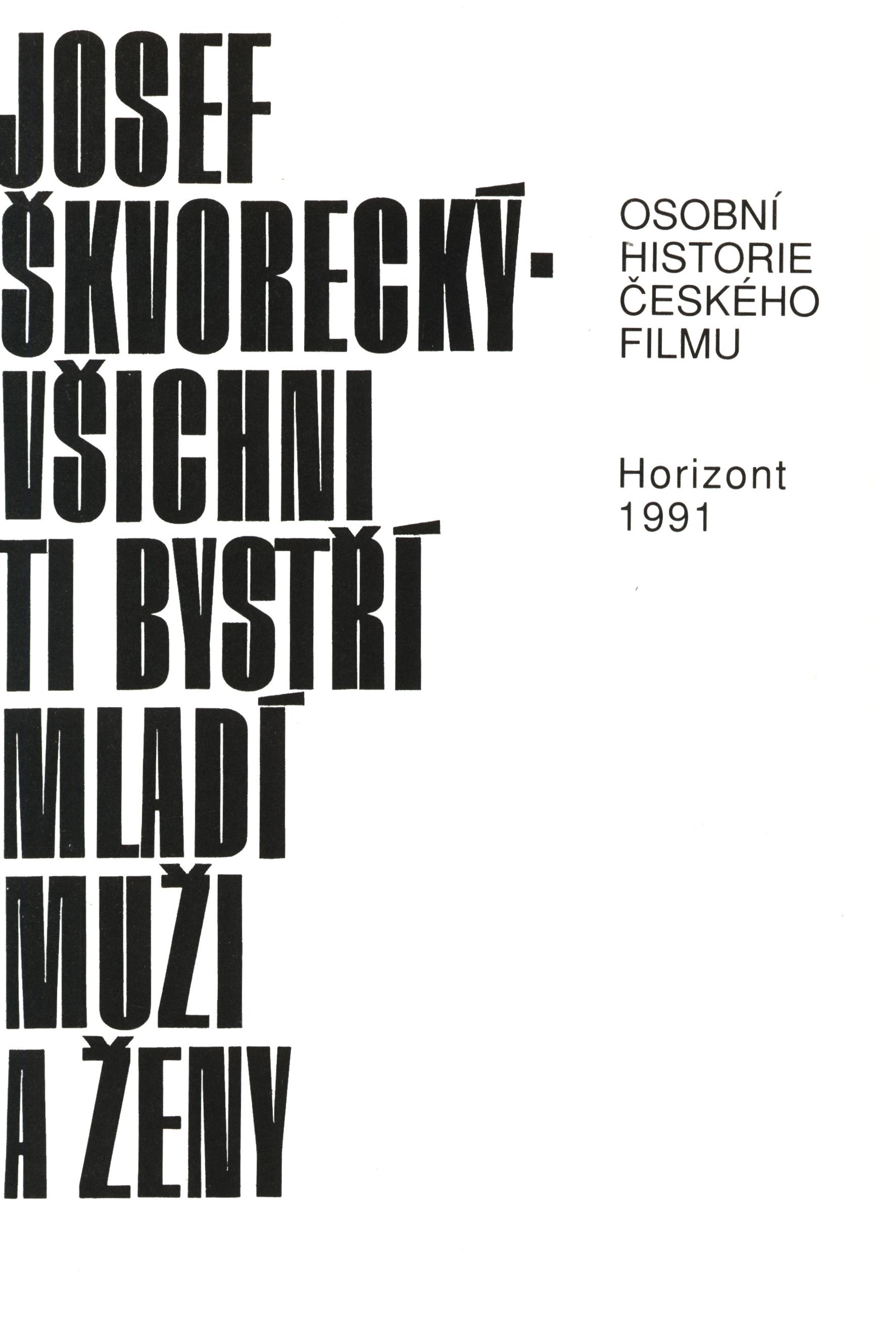 Názvové údaje Všichni ti bystří mladí muži a ženy : osobní historie českého filmu / Josef Škvorecký ; obálku a grafickou úpravu navrhl Miloslav Fulín Osobní jméno Škvorecký, Josef, 1924-2012 (Autor) Další autoři Fulín, Miloslav, 1928-2019 (Autor obálky) (Knižní grafik) Korp. Horizont (nakladatelství : 1968-1998) (Nakladatel, vydavatel) Jihočeské tiskárny (firma) (Tiskař) Údaje o vydání Vydání první Nakladatel Praha : Horizont, 1991 Výrobce České Budějovice : Jihočeské tiskárny, a.s. Rozsah 247 stran : fotografie (černobílé) ; 23 cm ISBN 80-7012-055-X (brožováno) Země vyd. Česko Jazyk dok. čeština Poznámky Fotografická obálka s dvoubarevným textem. - Typografický titulní list. - Četné černobílé fotografie v textu. - Obsah. - Tiráž.