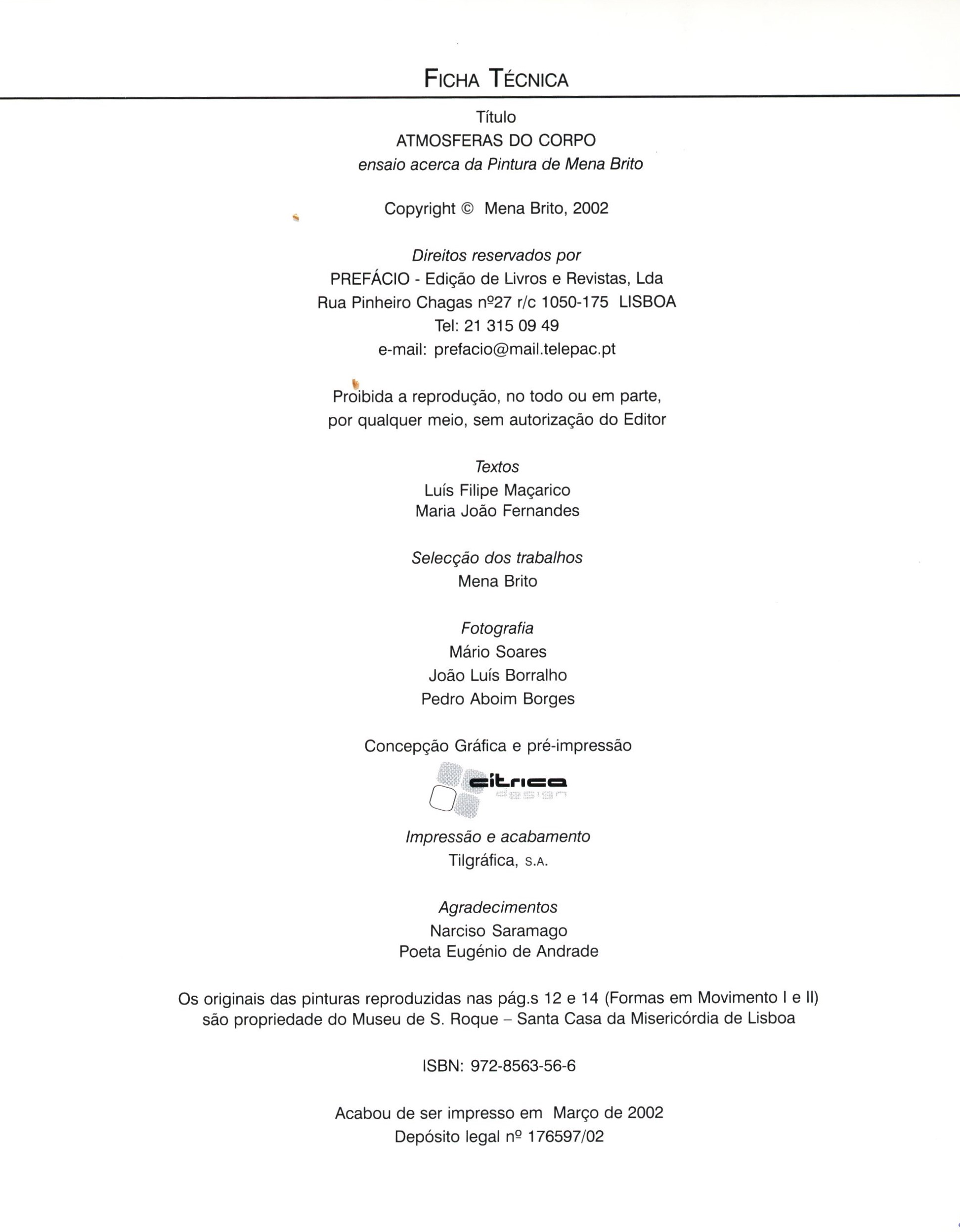 Názvové údaje Atmosferas do Corpo / Mena Brito ; Textos de: Luís Filipe Maçarico, Maria João Fernandes Osobní jméno Brito, Mena, 1955-2023 (Autor) (Umělec) (Dedikátor) Další autoři Maçarico, Luís Filipe, 1952- (Přispěvatel) Fernandes, Maria João (Přispěvatel) (Dedikátor) Listopad, František, 1921-2017 (Dedikant) Korp. Prefácio (firma) (Nakladatel, vydavatel) Nakladatel Lisboa : Prefácio, 2002 Výrobce Impressão e acabamento Tilgráfica, s.a. Rozsah 50 stran : reprodukce, ilustrace ; 22 cm ISBN 972-8563-56-6 (vázáno) Země vyd. Portugalsko Jazyk dok. portugalština Poznámky Ilustrovaná obálka. - Zdobené předsádky. - Typografický titulní list. - Barevné reprodukce, černobílé ilustrace. - Tiráž. - Biografie.