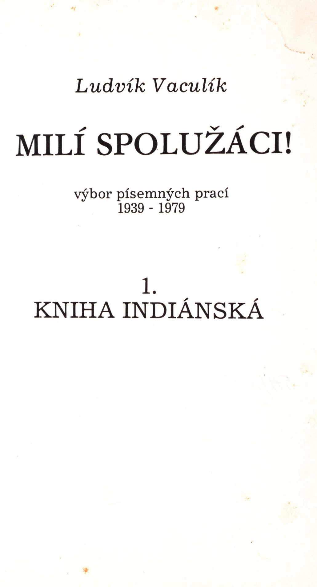 Názvové údaje Milí spolužáci! : Výbor písemných prací 1939-1979. [Sv.] 1, Kniha indiánská / Ludvík Vaculík Osobní jméno Vaculík, Ludvík, 1926-2015 (Autor) Další autoři Index (nakladatelství) (Nakladatel, vydavatel) Nakladatel Köln : Index, 1986 Rozsah 123 stran, [4] strany obrazové přílohy : ilustrace ; 17 cm ISBN (brožováno) Země vyd. Německo Jazyk dok. čeština Poznámky Ilustrovaná obálka. - Černobílá fotografie na frontispice. - Titulní list. - Černobílé faksimile a ilustrace. - Černobílé fotografie na přílohách. - Biografická poznámka na zadní straně obálky.