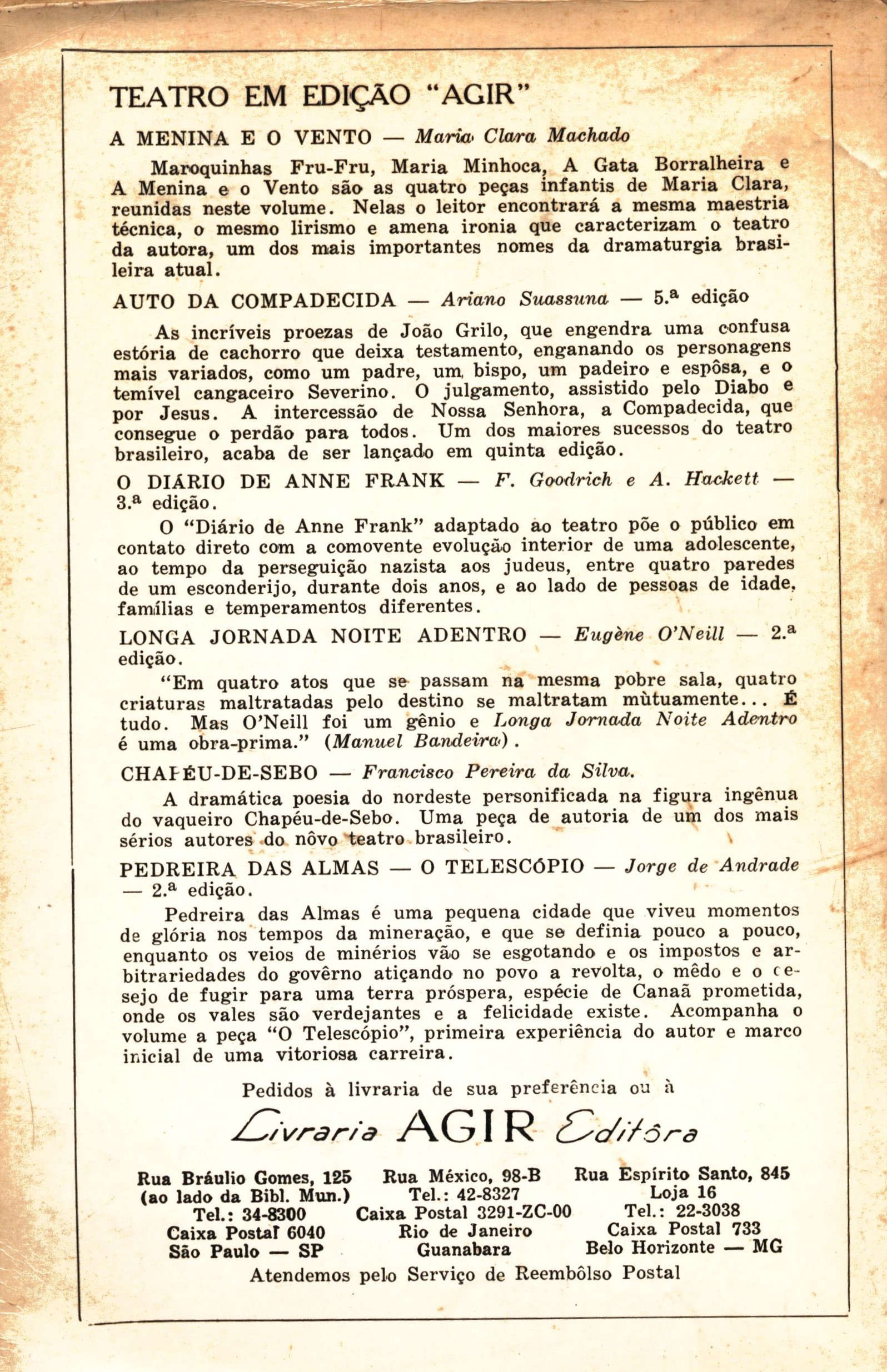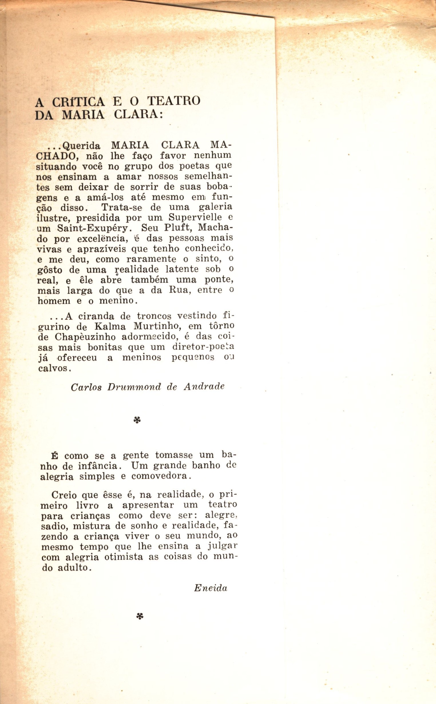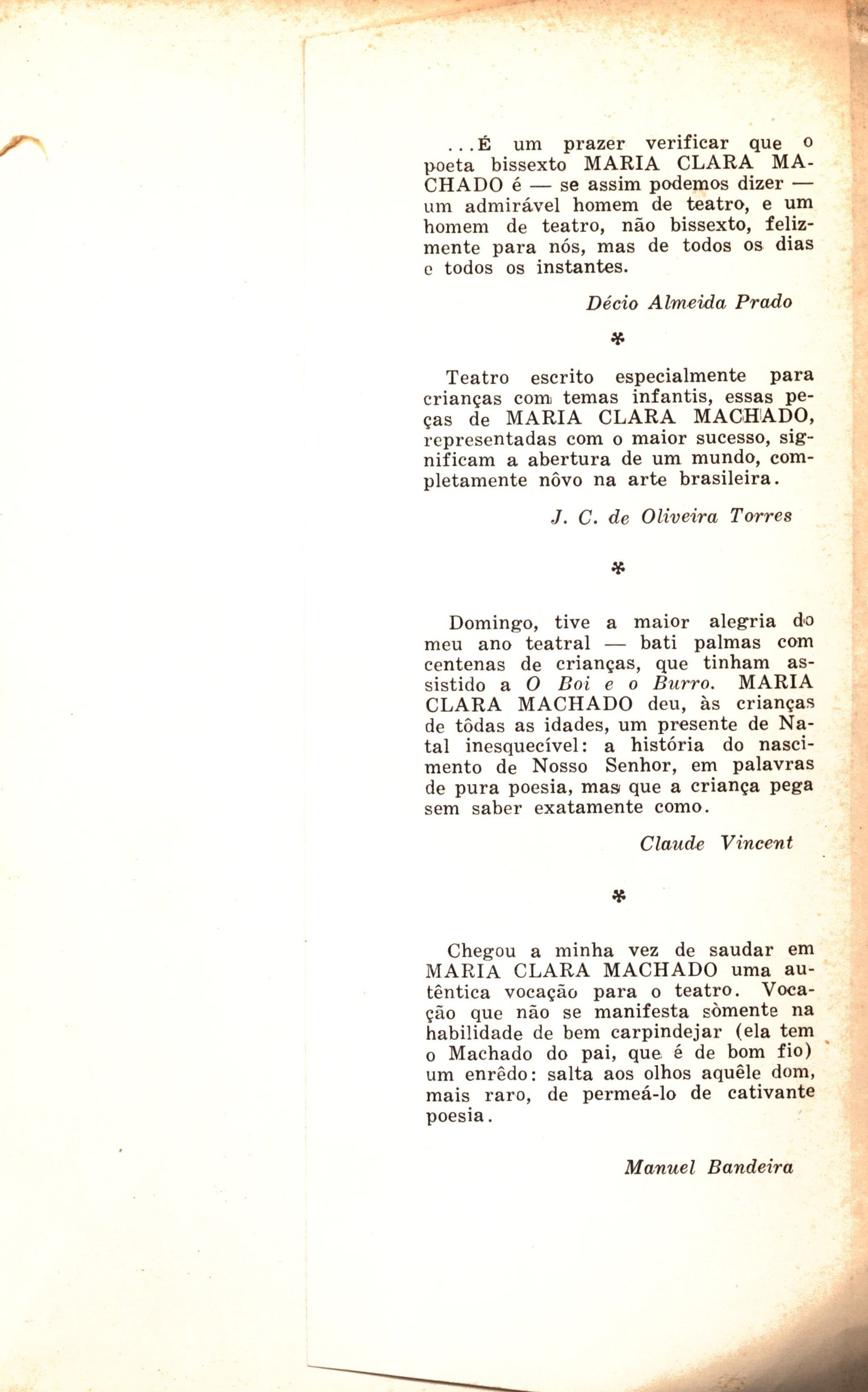 Názvové údaje Teatro infantil / Maria Clara Machado ; Capa de José Rios Osobní jméno Machado, Maria Clara, 1921-2001 (Autor) Další autoři Rios, José (Autor obálky) Korp. Agir (firma) (Nakladatel, vydavatel) Borsoi s / a. Indústria e comércio (Tiskař) Údaje o vydání 4.a edição Nakladatel Rio de Janeiro : Livraria Agir Editôra, 1969 Rozsah 263 stran : čb. fotografie , čb. ilustrace ; 22 cm ISBN (Vázáno) Země vyd. Brazílie Jazyk dok. portugalština Poznámky Ilustrovaná obálka. - Typografický titulní list. - Obsah. - Čb. fotografie. - Čb. ilustrace. - Na přední záložce několik slov Carlose Drummond de Andrade o autorce. - Na zadní záložce pochvalné kritiky díla autorky. - Na zadní straně obálky soupis některých dalších knih vydaných ve stejném vydavatelství jako kniha autorky.